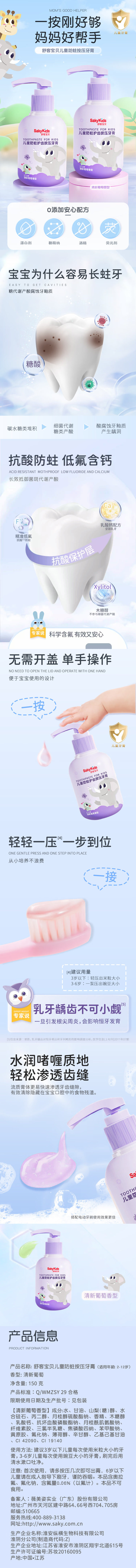 舒客 宝贝儿童防蛀护齿按压牙膏 葡萄味 150g 星云粉(单位:支)