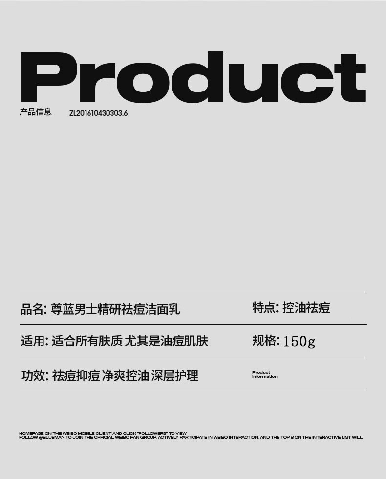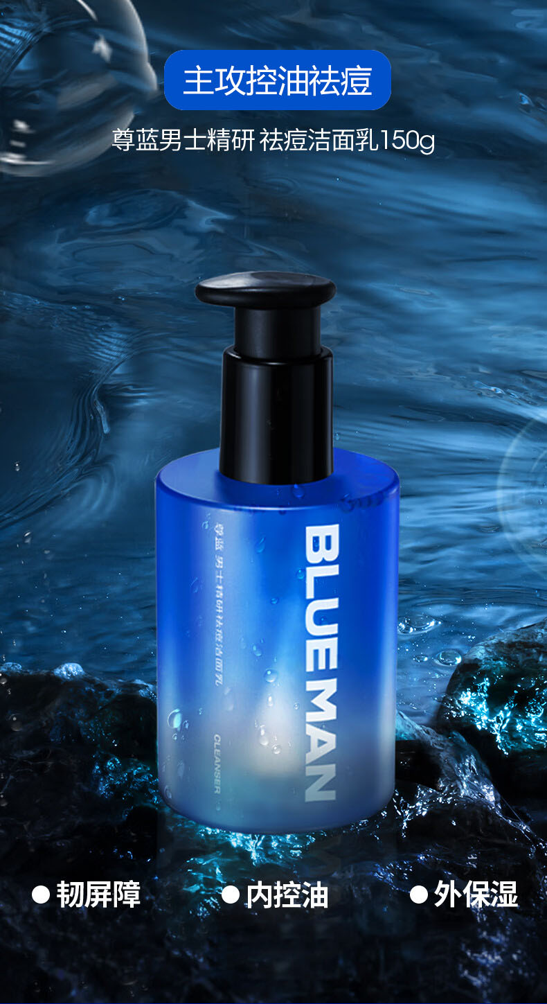 尊蓝(PRIME BLUE) 男士控油祛痘 洁面乳 150g 蓝色(单位:瓶)