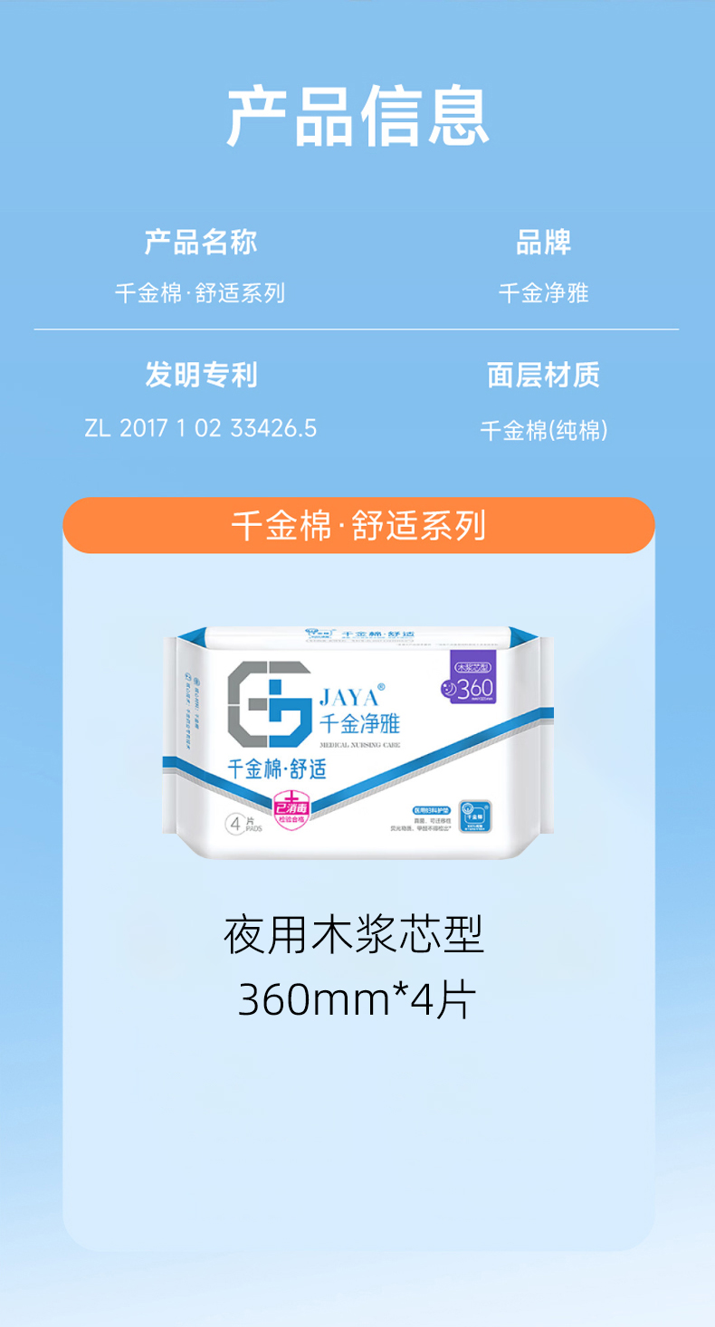 千金净雅 卫生巾 医护级纯棉妇科专用棉巾特长夜用 360mm*4片*1袋 混色(单位:包)