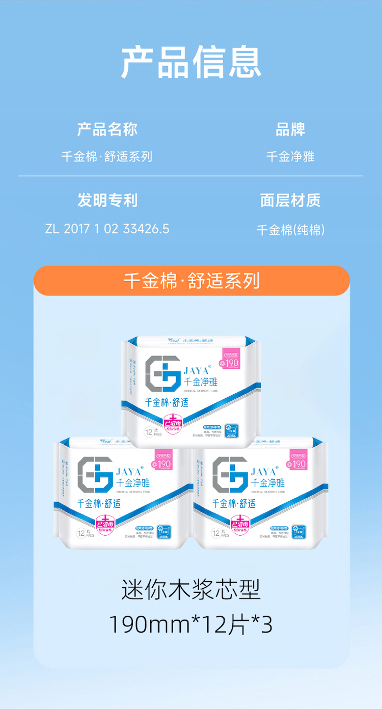 千金净雅 卫生巾 医护级纯棉日用妇科专用 190mm*12片*3袋 混色(单位:组)