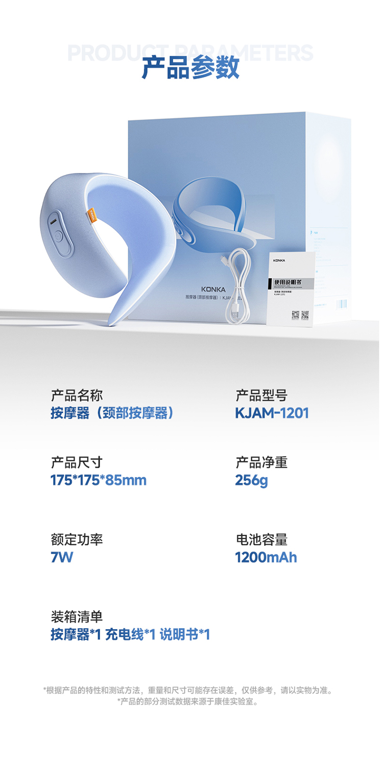 康佳(KONKA) 多频调节 热敷+按摩多功能颈部按摩器 KJAM-1201 1200mah 水蓝色(单位:台)