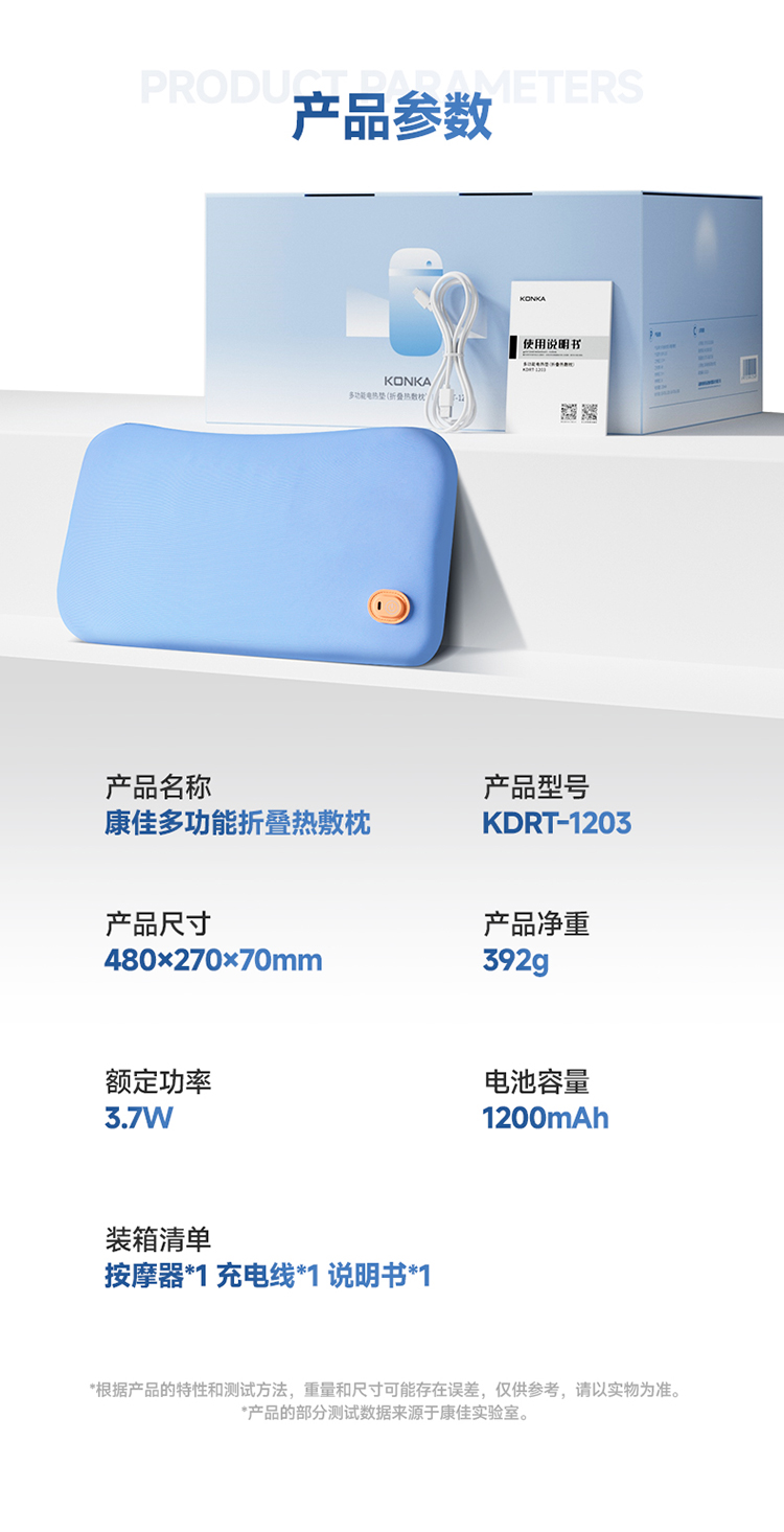 康佳(KONKA) 多功能折叠热敷按摩器 KDRT-1203 1200mah 水蓝色(单位:件)