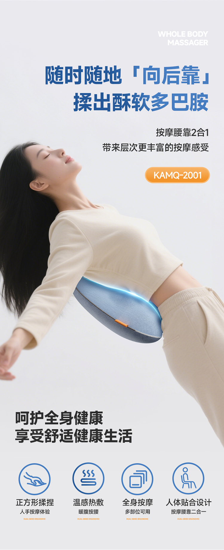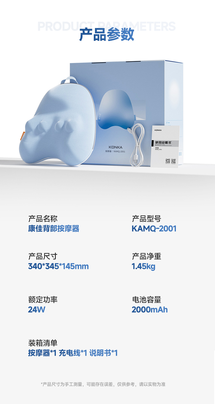 康佳(KONKA) 揉捏腰背斜方肌背部腰部按摩器 KAMQ-2001 2000mah 水蓝色(单位:件)