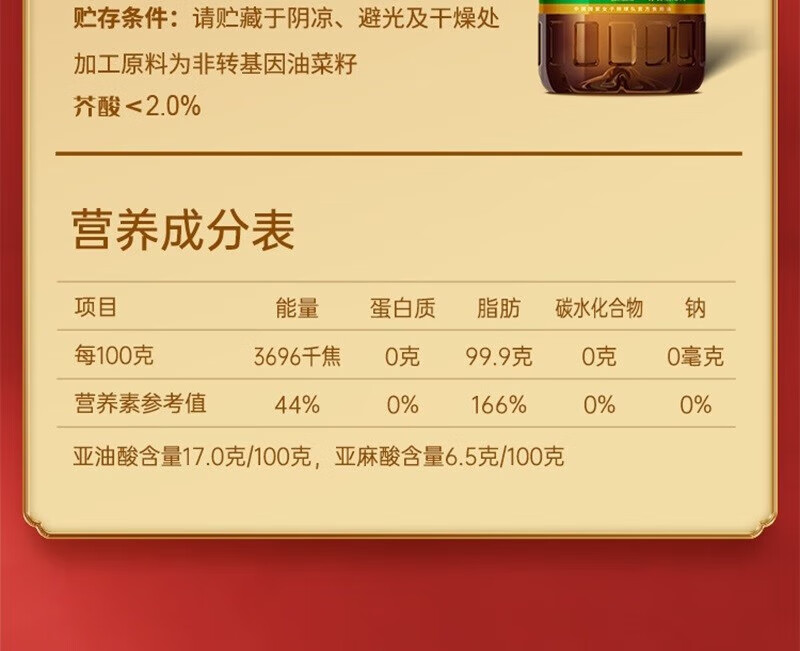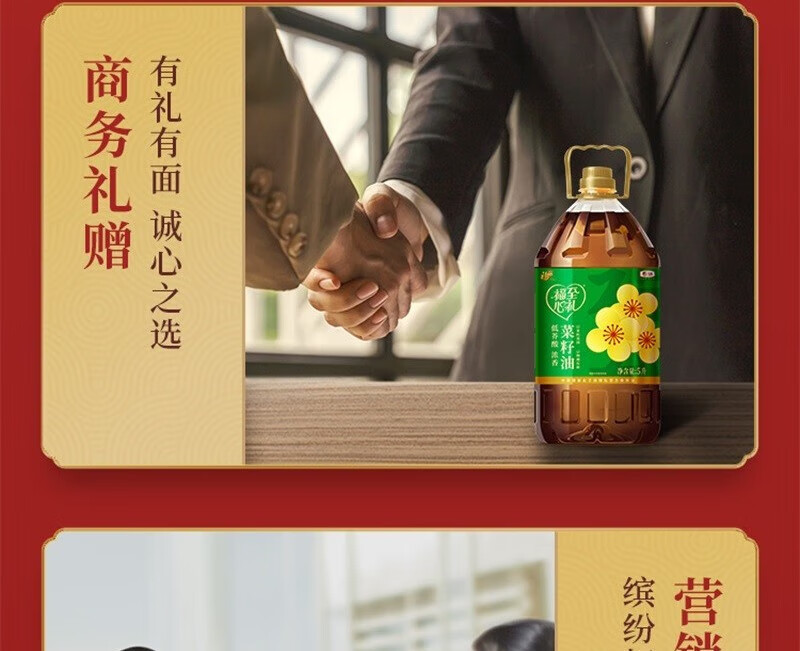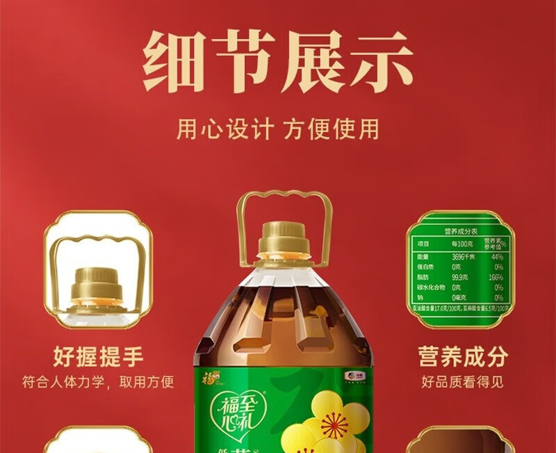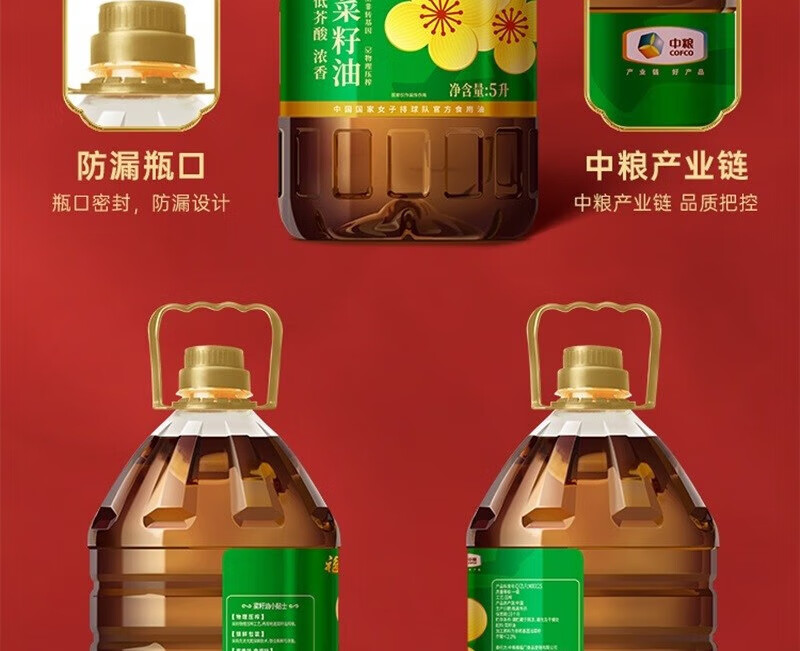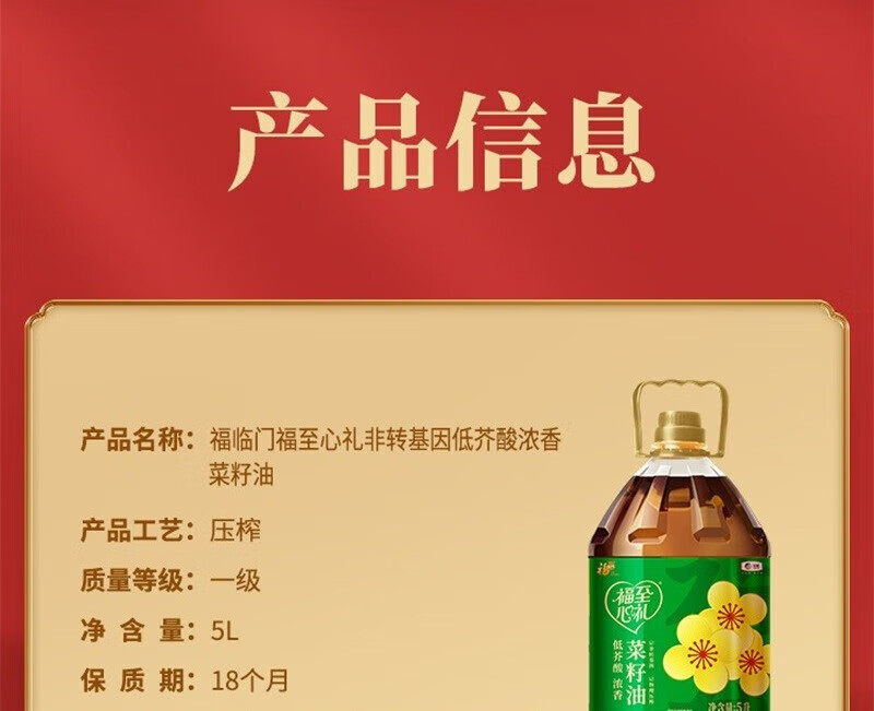 福临门 中粮 福至心礼低芥酸浓香菜籽油 5L 绿色(单位:桶)