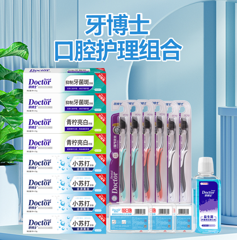 牙博士 牙膏牙刷 减轻牙渍垢牙菌斑护龈实惠家庭装 18件套 混色(单位:组)