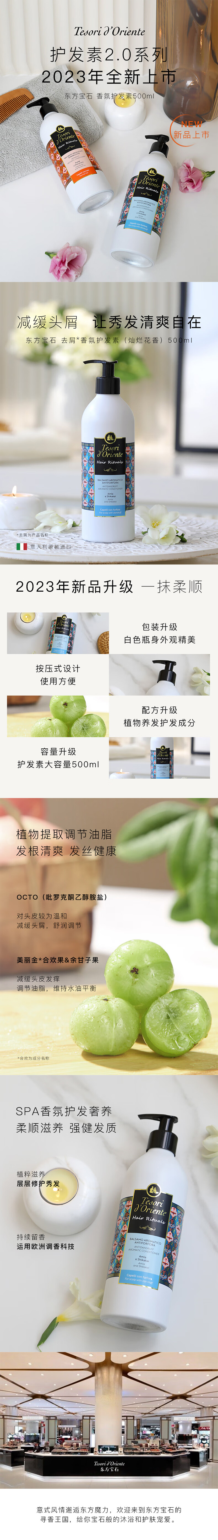 东方宝石(Tesori D’oriente) 去屑香氛护发素 灿烂花香 500ml 白色(单位:瓶)