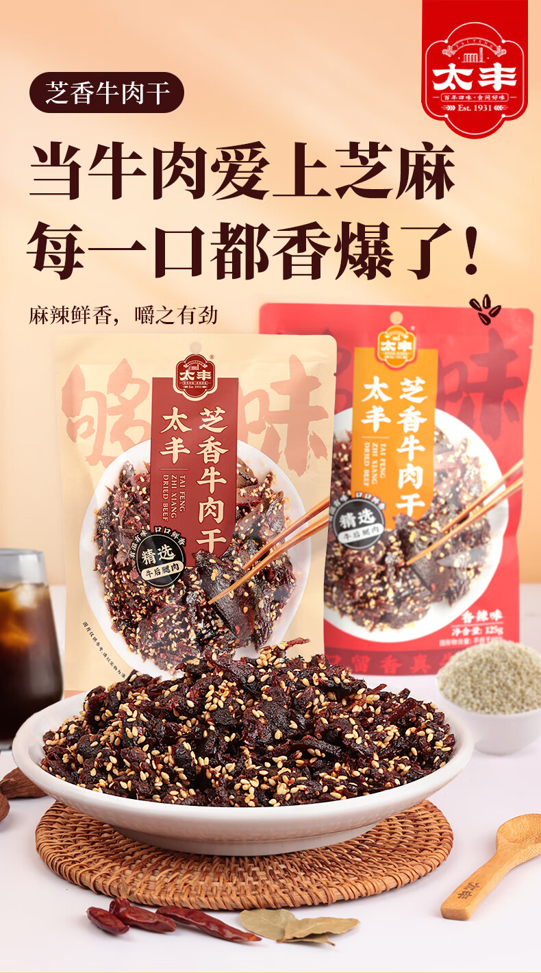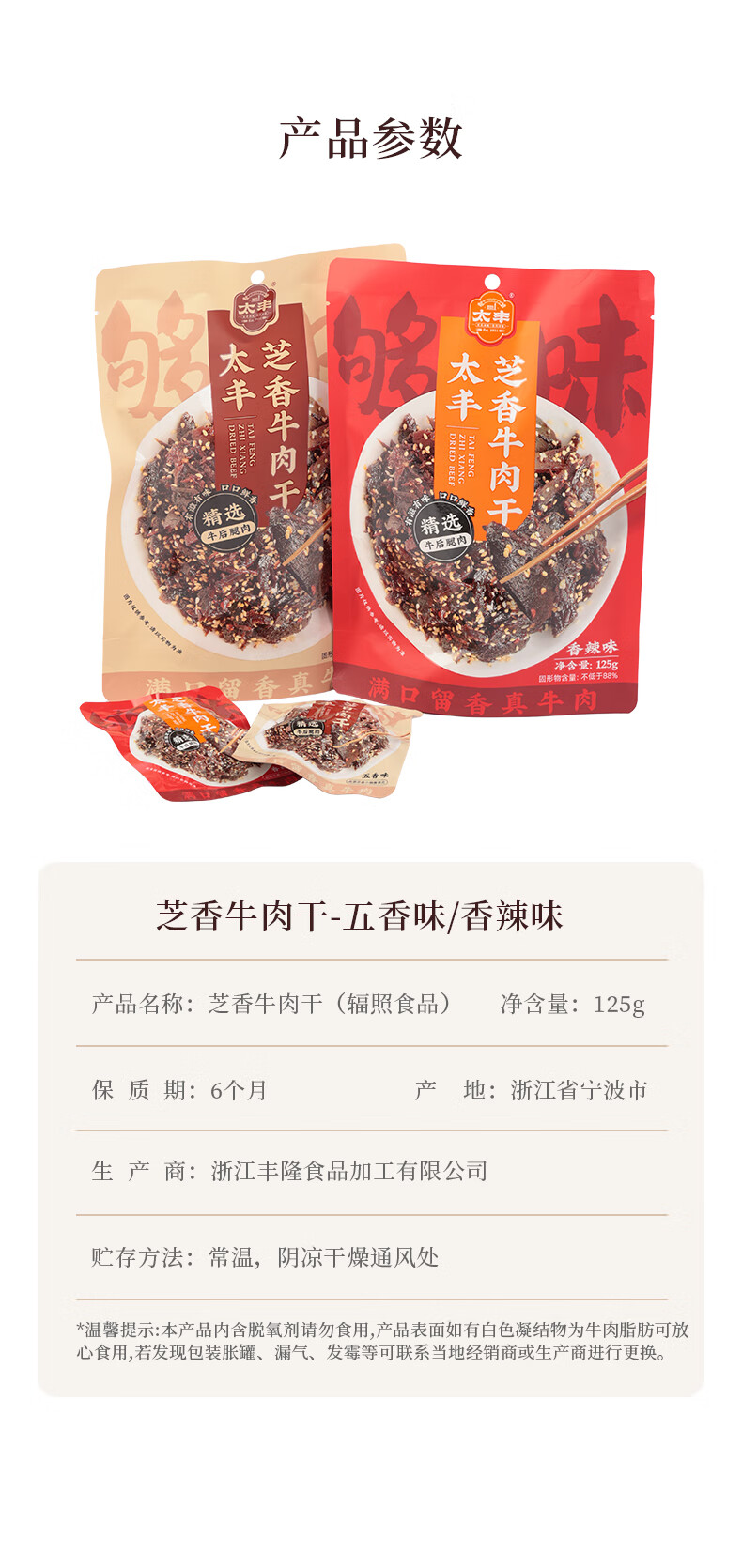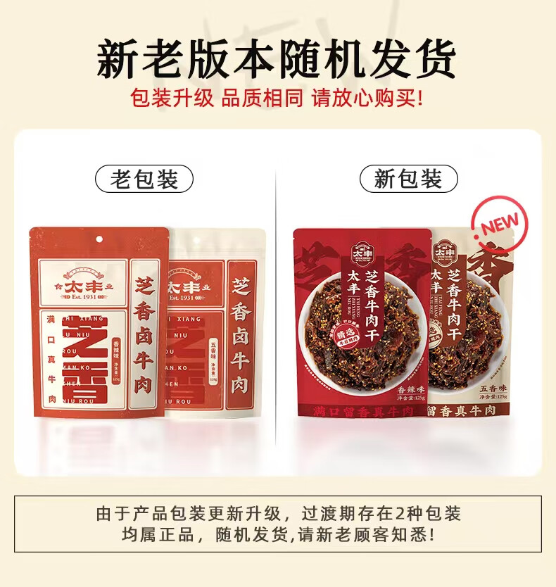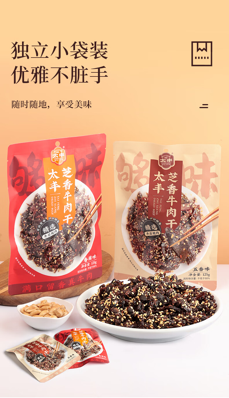 太丰 芝香牛肉干 五香味 125g*3袋 混色(单位:组)