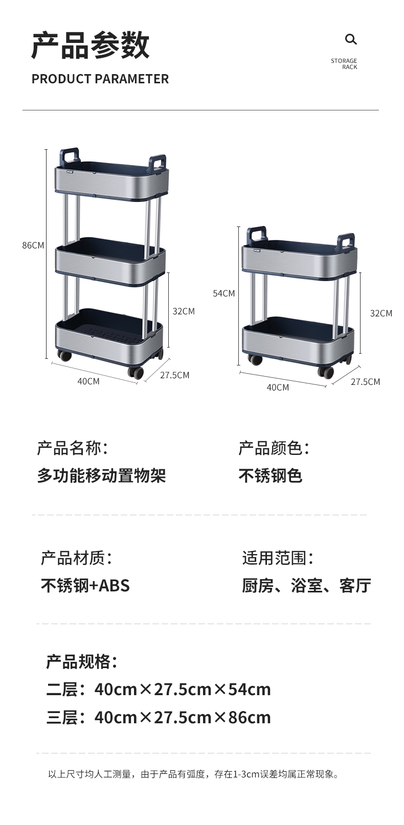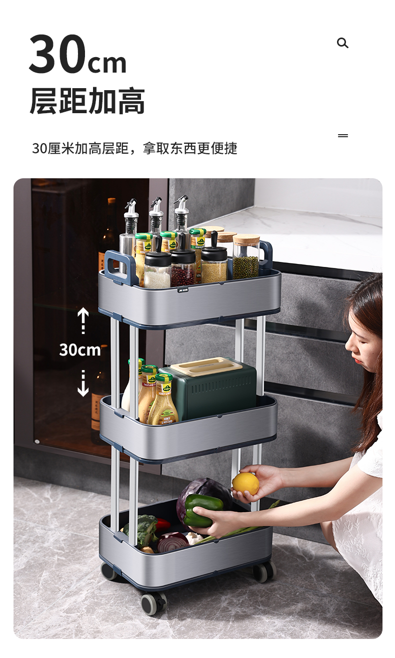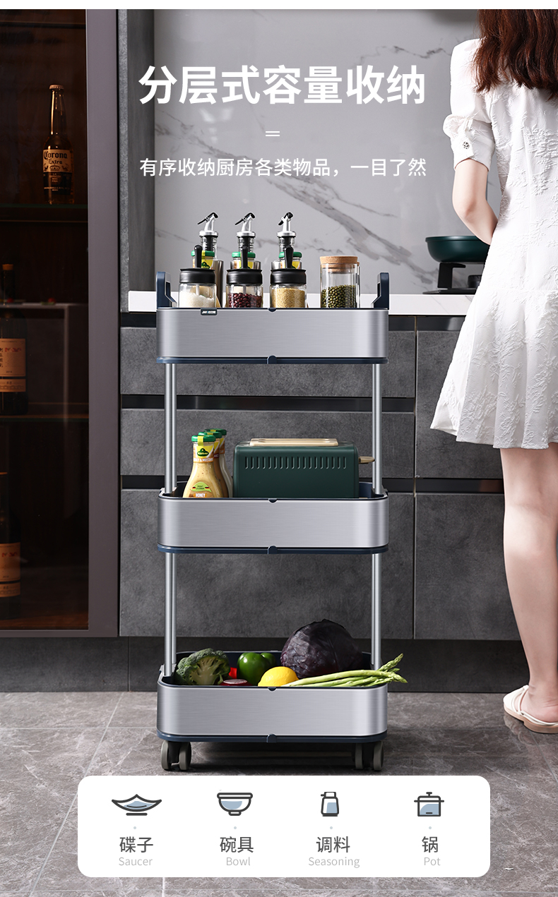 洁安惠 不锈钢置物架 019 三层 银色(单位:台)