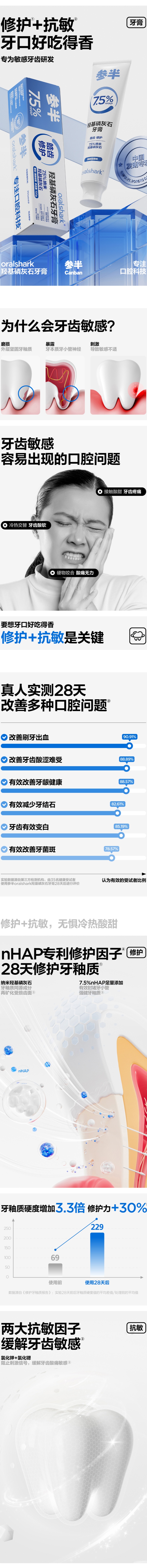 参半(NYSCPS) 羟基磷灰石 牙膏 100g*2支 蓝色(单位:组)