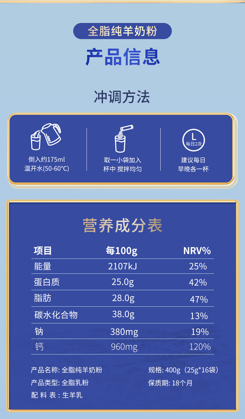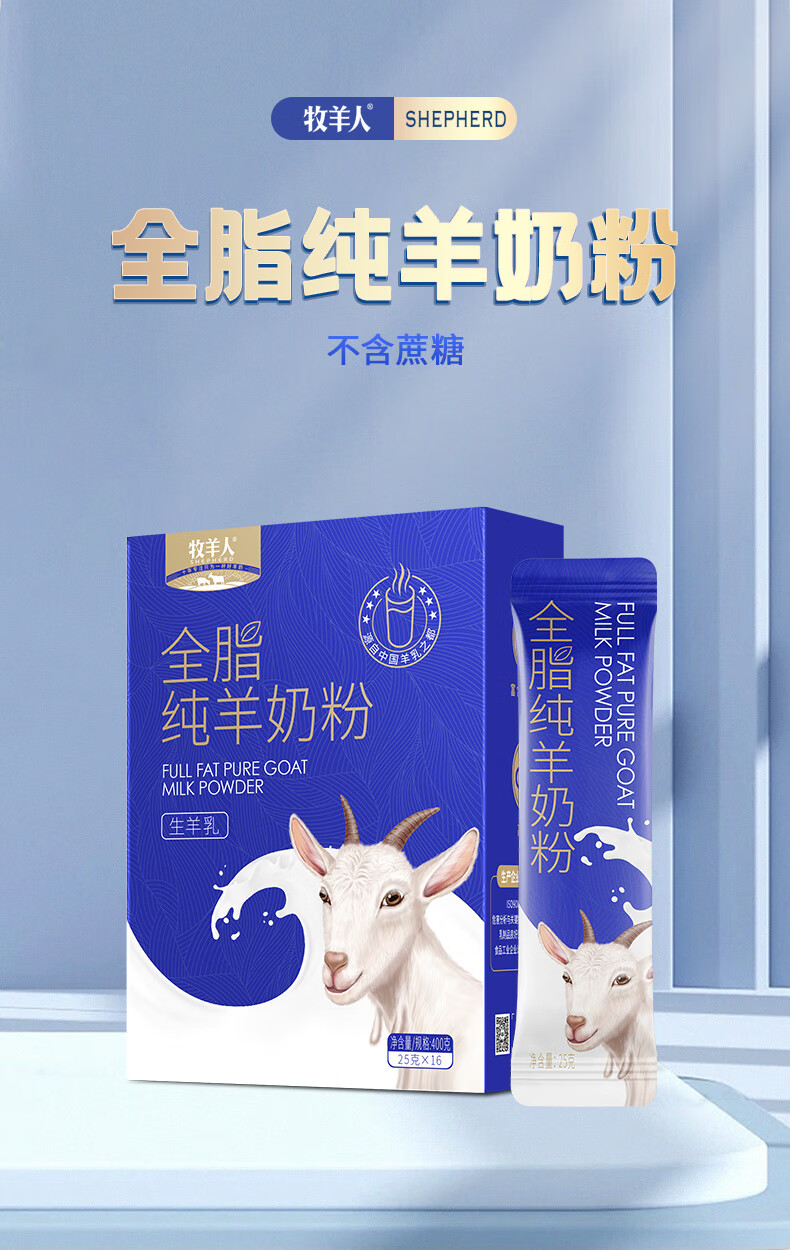 牧羊人 全脂羊奶粉 高钙高蛋白 400g*1盒 蓝色(单位:盒)