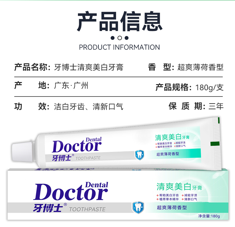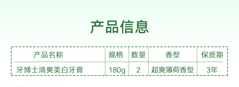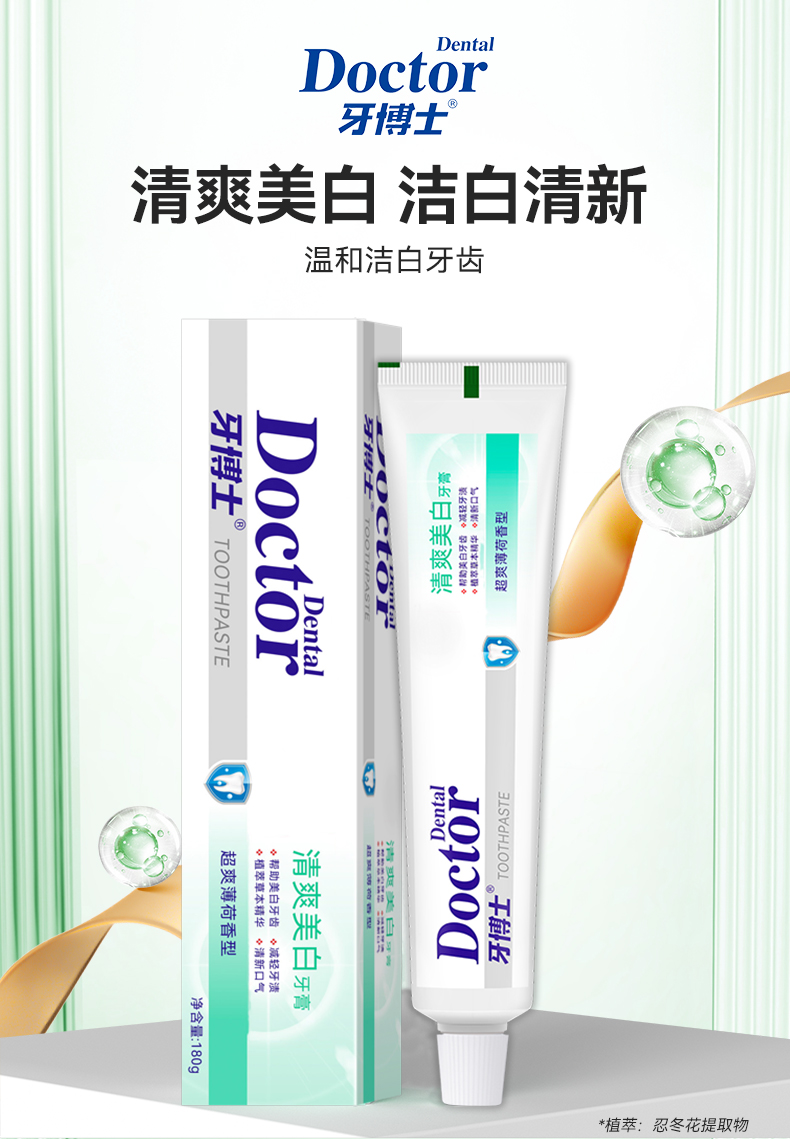 牙博士 牙膏 清爽美白 180g*2支 白色(单位:组)