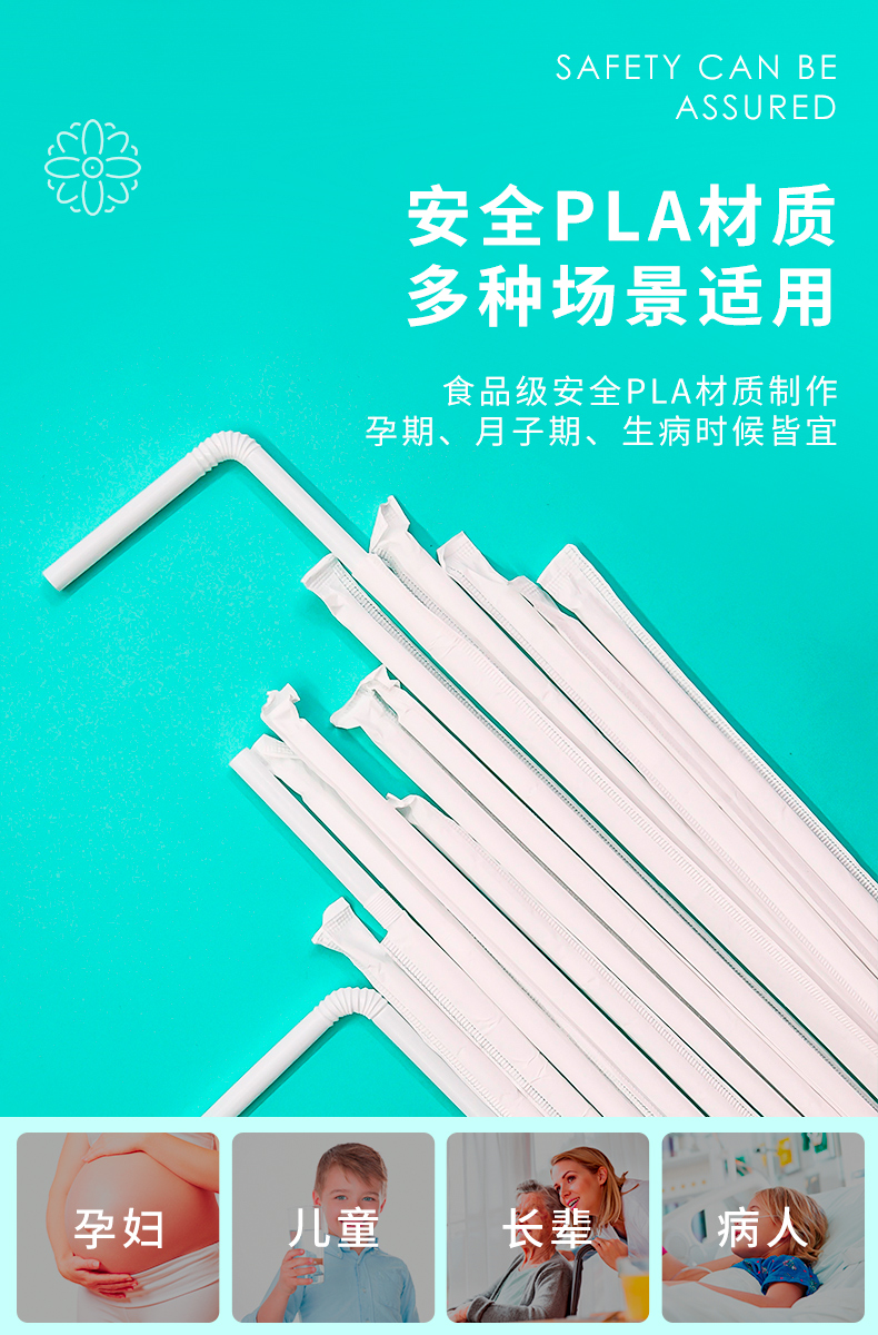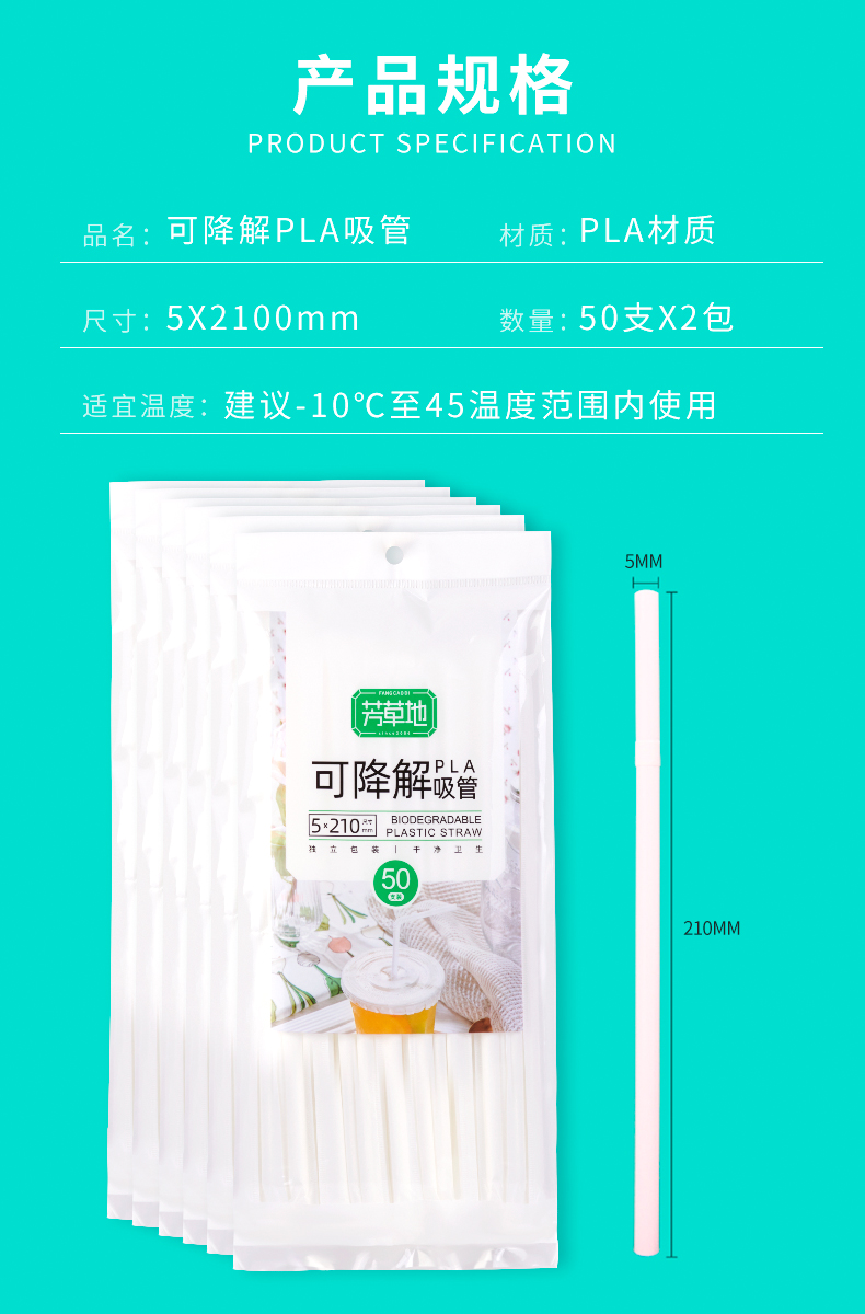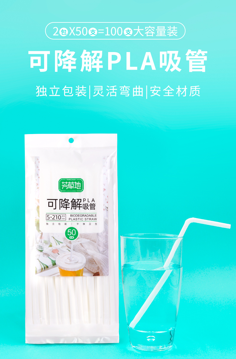 芳草地 一次性吸管 3G6016*6 50只*2包/袋*3 白色(单位:组)