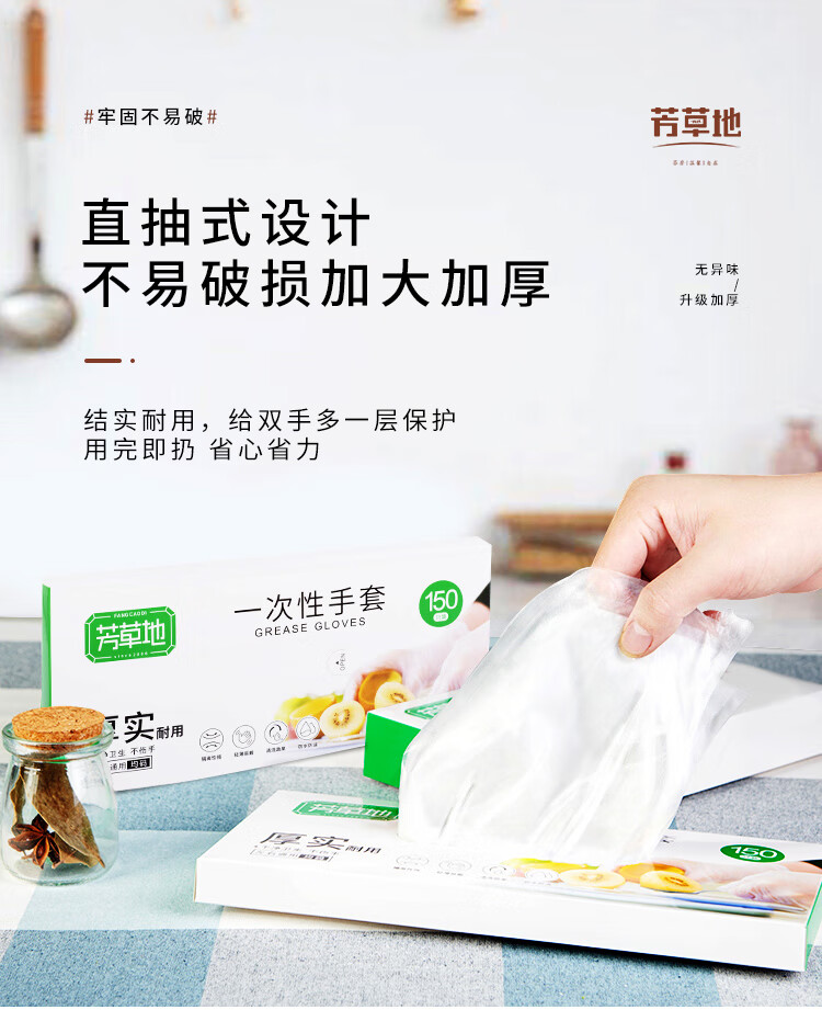 芳草地 一次性手套 3G3389*6 150只*2盒/袋*3 绿色(单位:组)