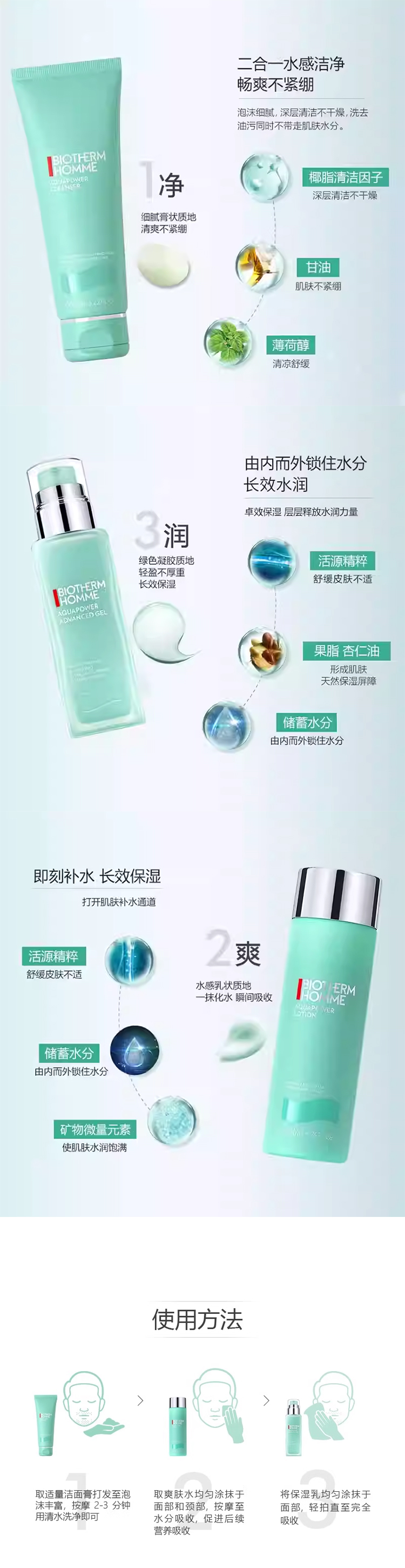 碧欧泉(BIOTHERM) 男士水动力净澈保湿套装 ZB-027【专柜款】 水200ml+乳75ml+洁面125ml 绿色(单位:盒)