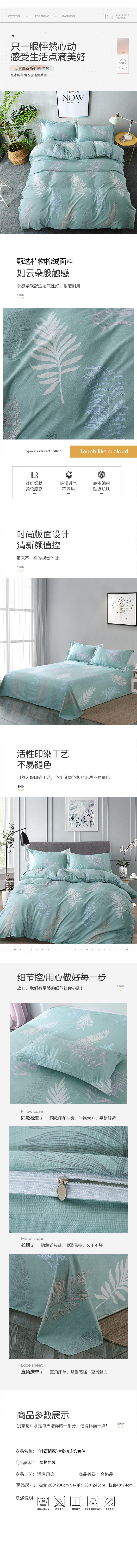 紫韵 “叶语情深”植物棉床饰四件套 ZY-TJ1777 被套:200*230 cm 水蓝色(单位:套)