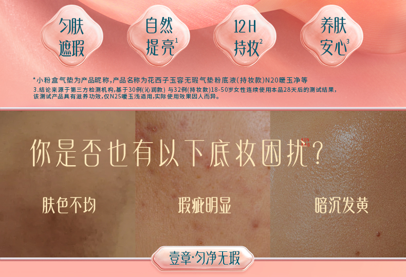 花西子 玉容无瑕气垫持妆款粉底液 持久水润遮瑕 11g(含1个同款替芯) N30暖玉柔(单位:盒)