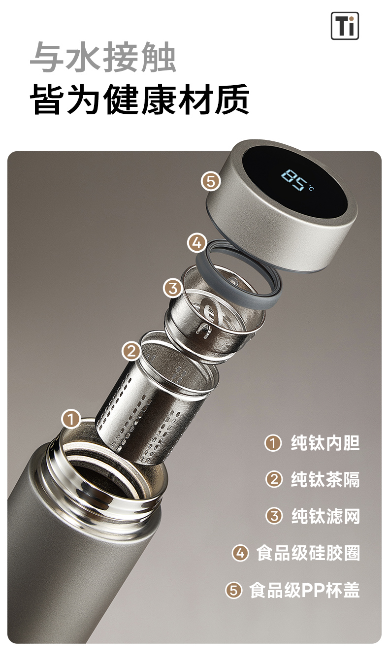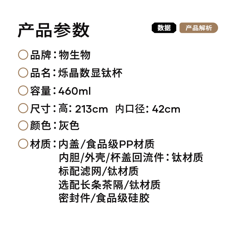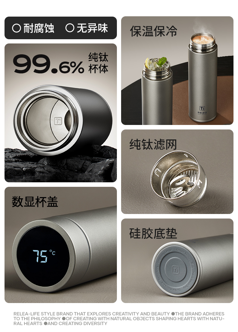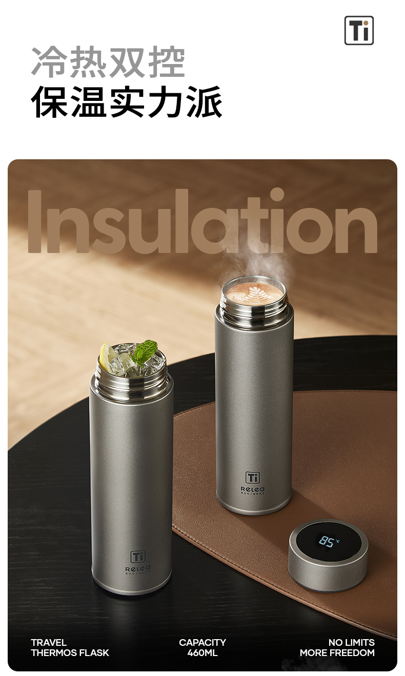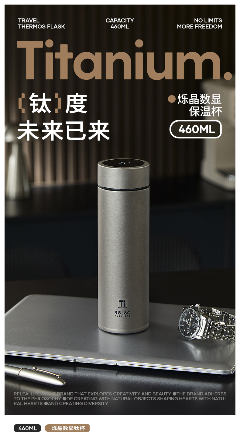 物生物(RELEA) 烁晶数显钛杯460ML JV012565-0460-US00 460ML 灰色(单位:个)