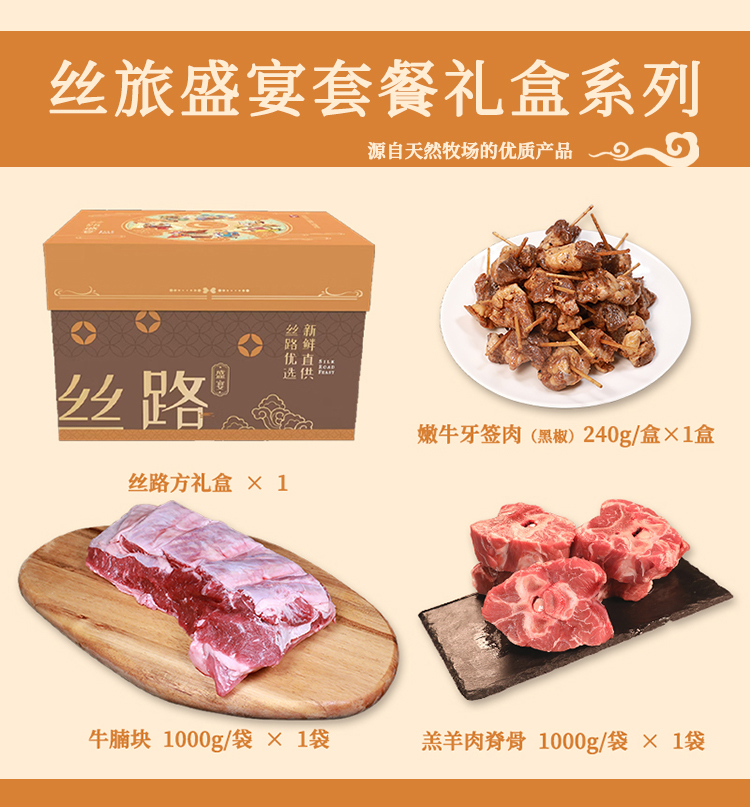 丝旅盛宴 珍味牛羊套盒 3件/套 2240g 黄色(单位:套)