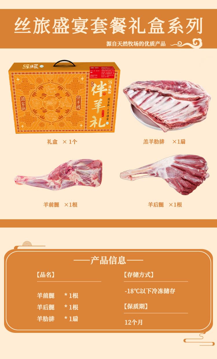 丝旅盛宴 伴羊礼羔羊套盒 3件/套 约5kg 橙色(单位:套)