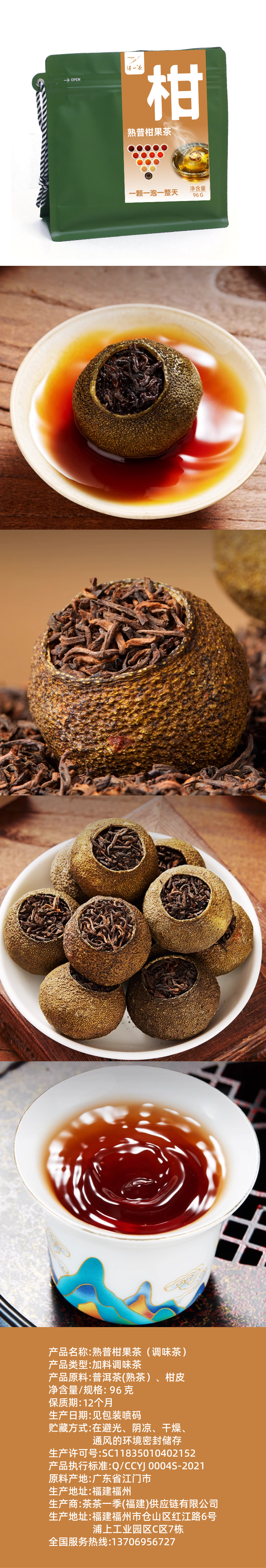 得一茶 花果茶调味茶 熟普柑果茶 96g(12g*8颗) 绿色(单位:袋)