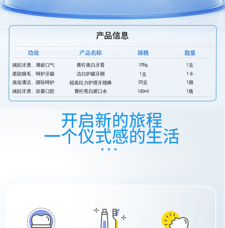 牙博士 牙膏 青柠亮白 105g+牙刷+牙线+漱口水 混合(单位:组)