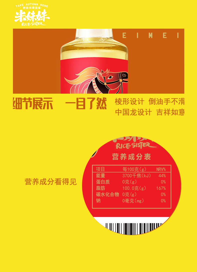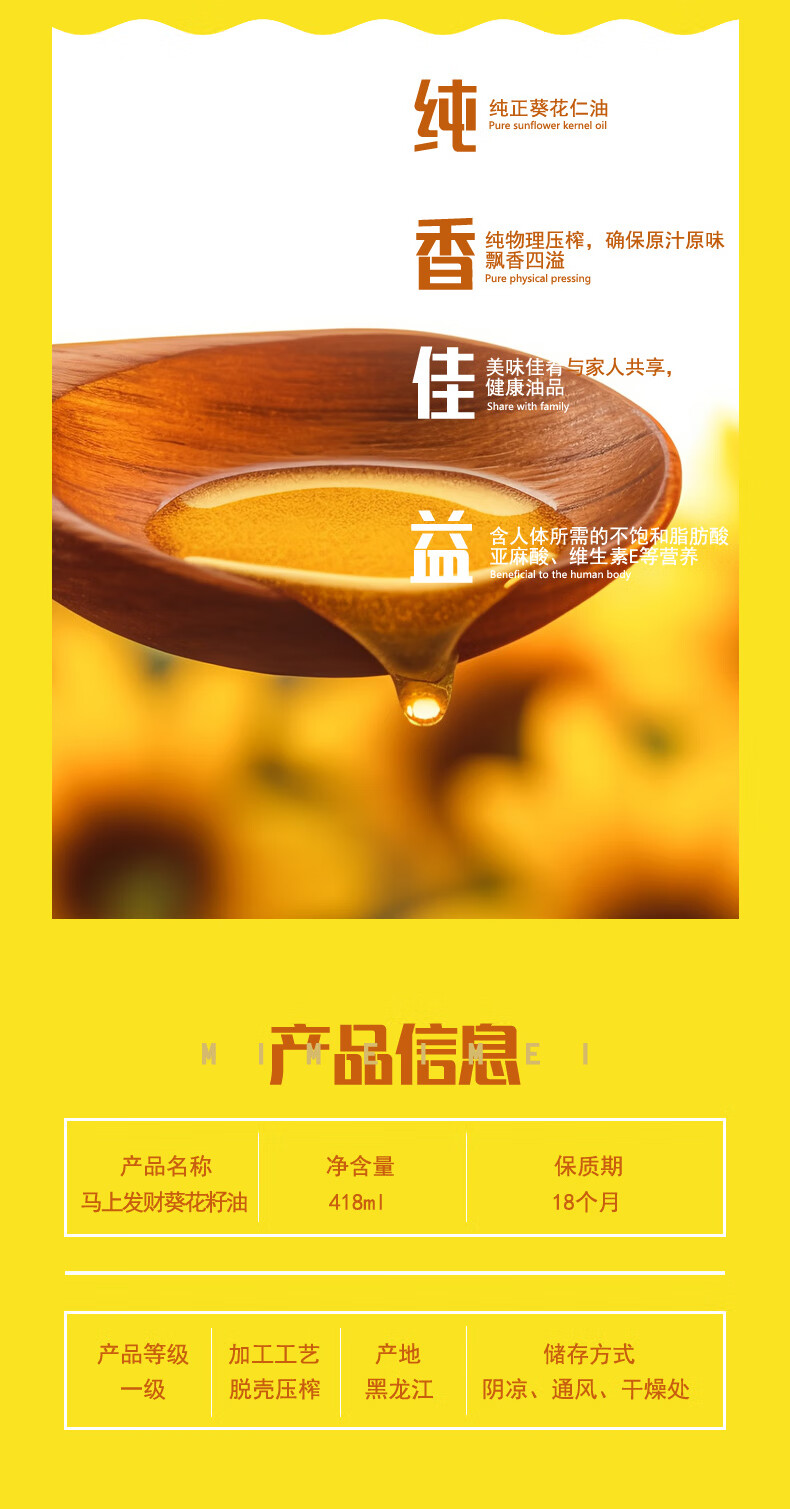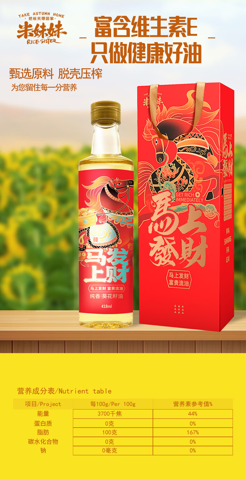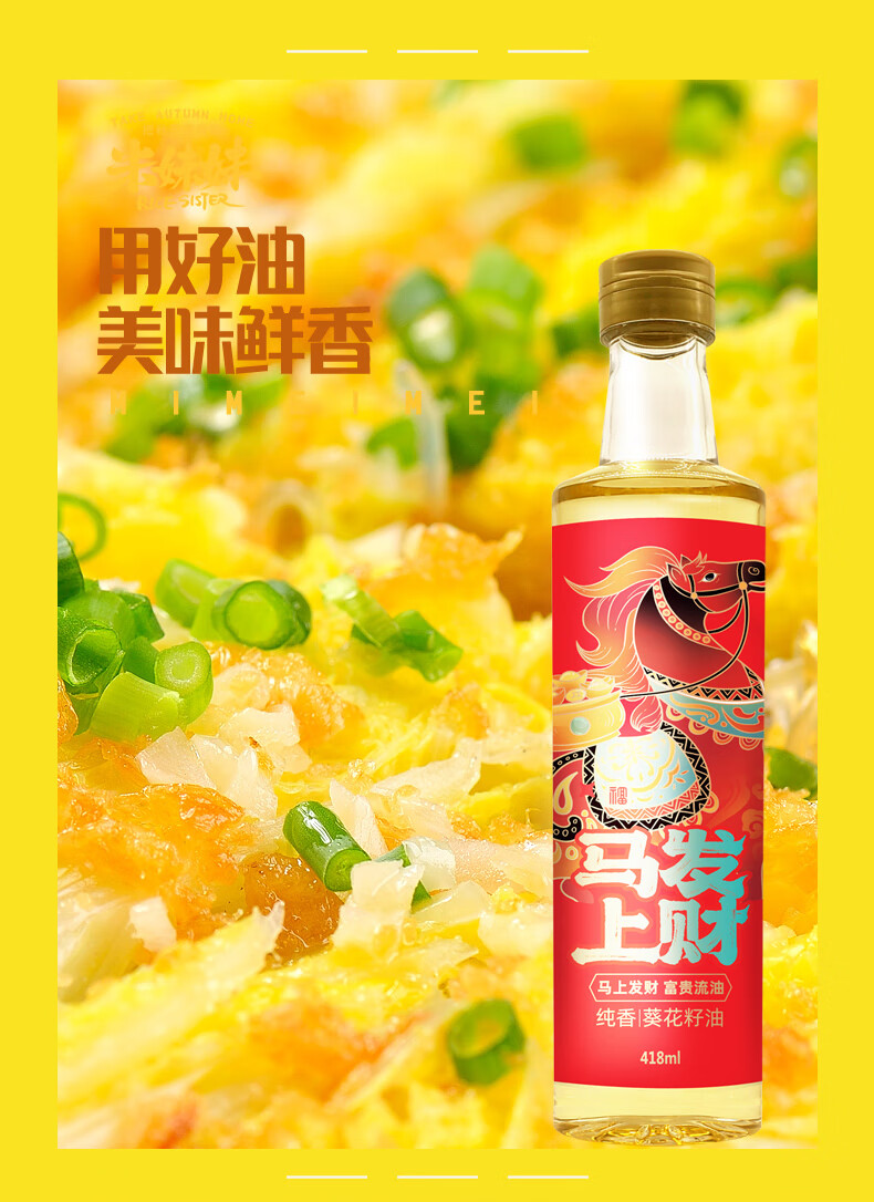 米妹妹(MIMEIMEI) 食用油 马上发财葵花籽油 418ml*1 红色(单位:盒)