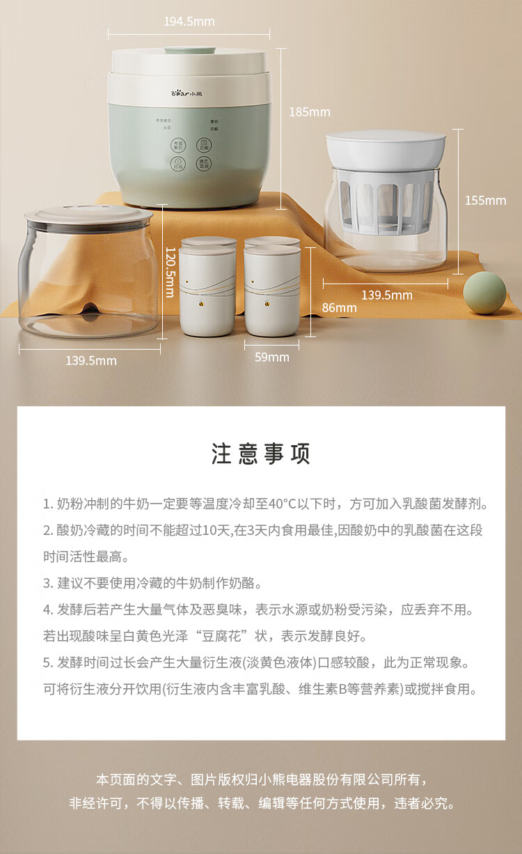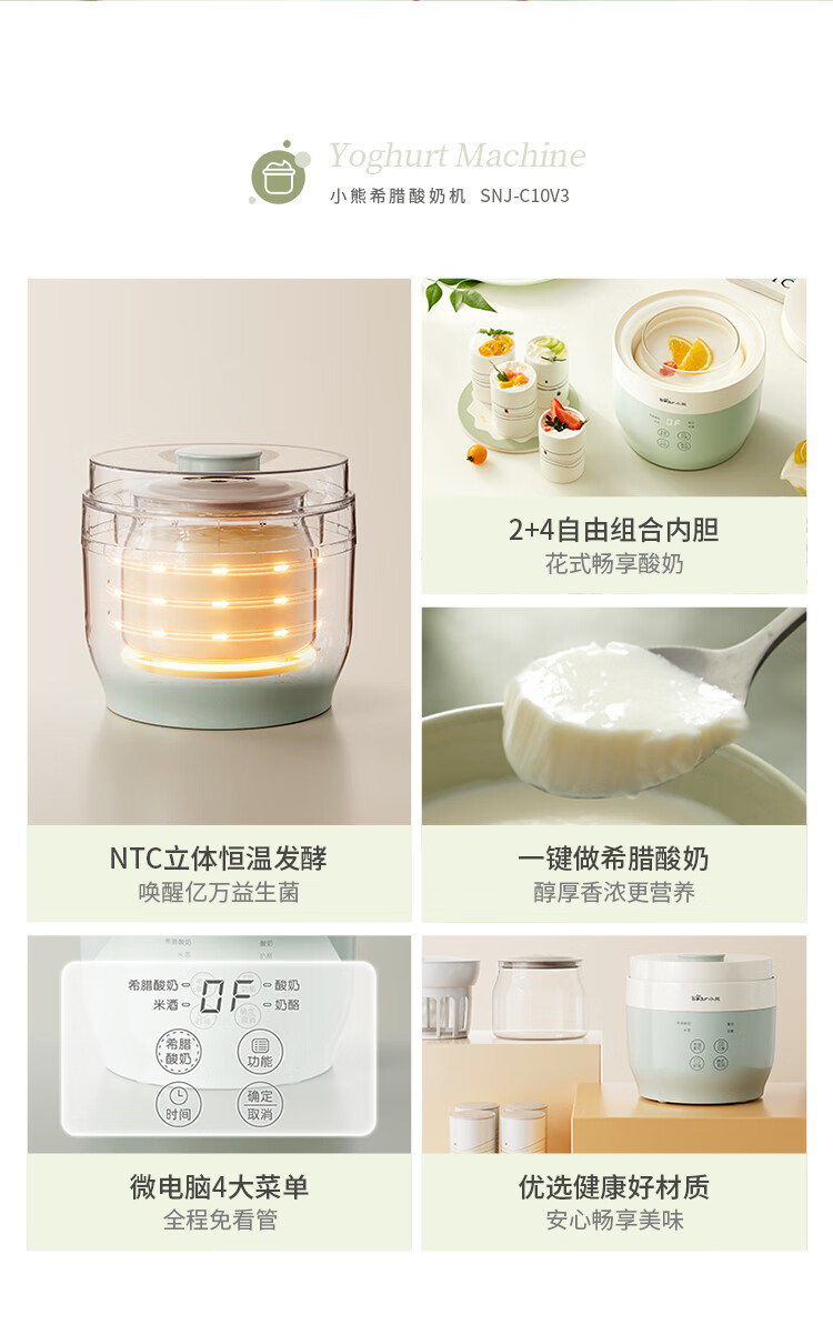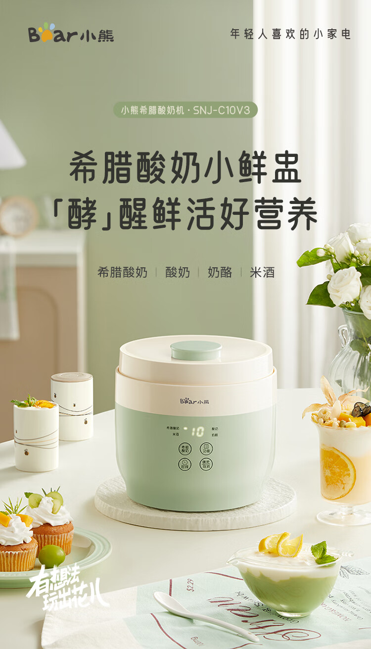 小熊(Bear) 酸奶机 SNJ-C10V3 1L 绿色(单位:台)