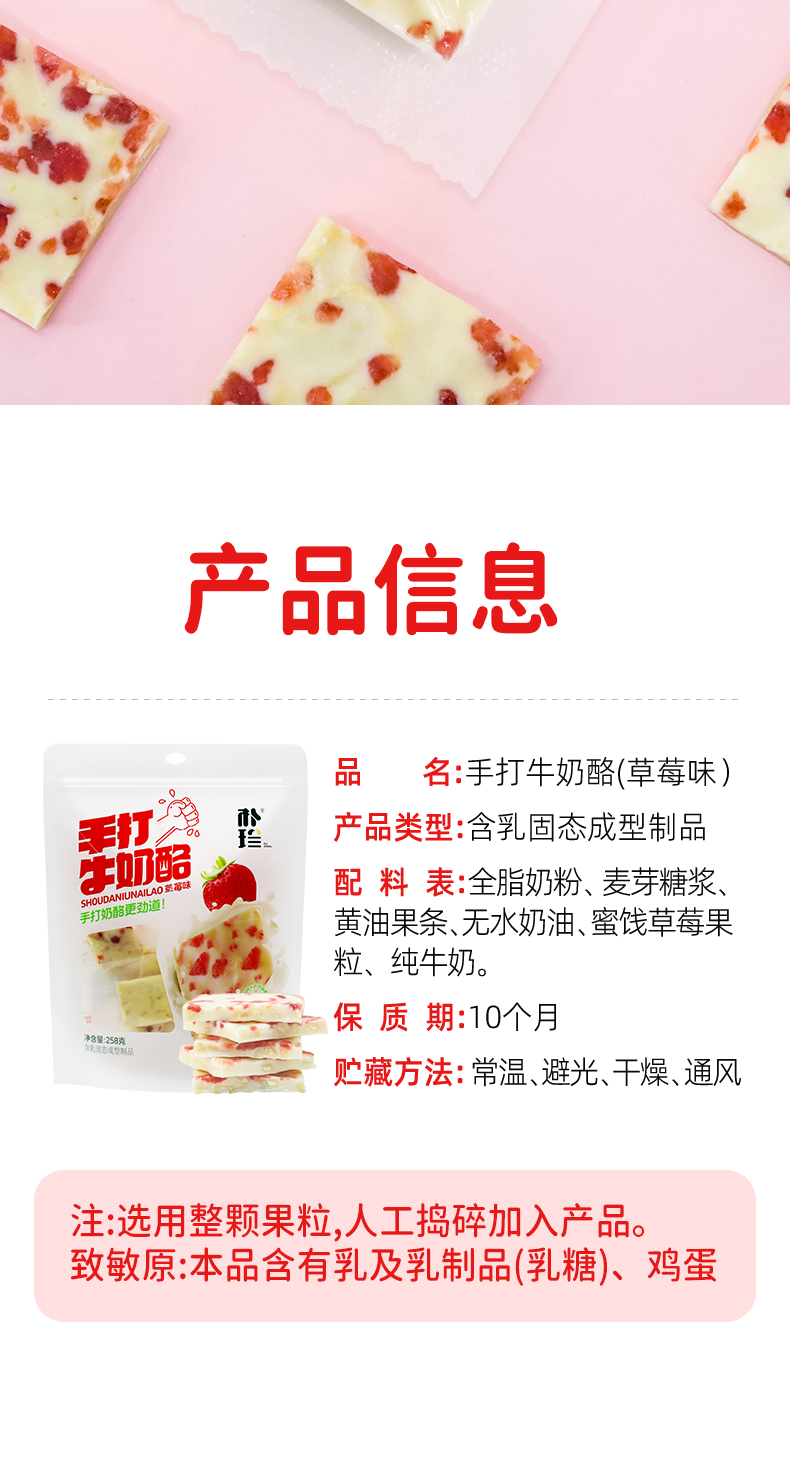 朴珍 手打牛奶酪 草莓味 258g 钢琴白(单位:袋)