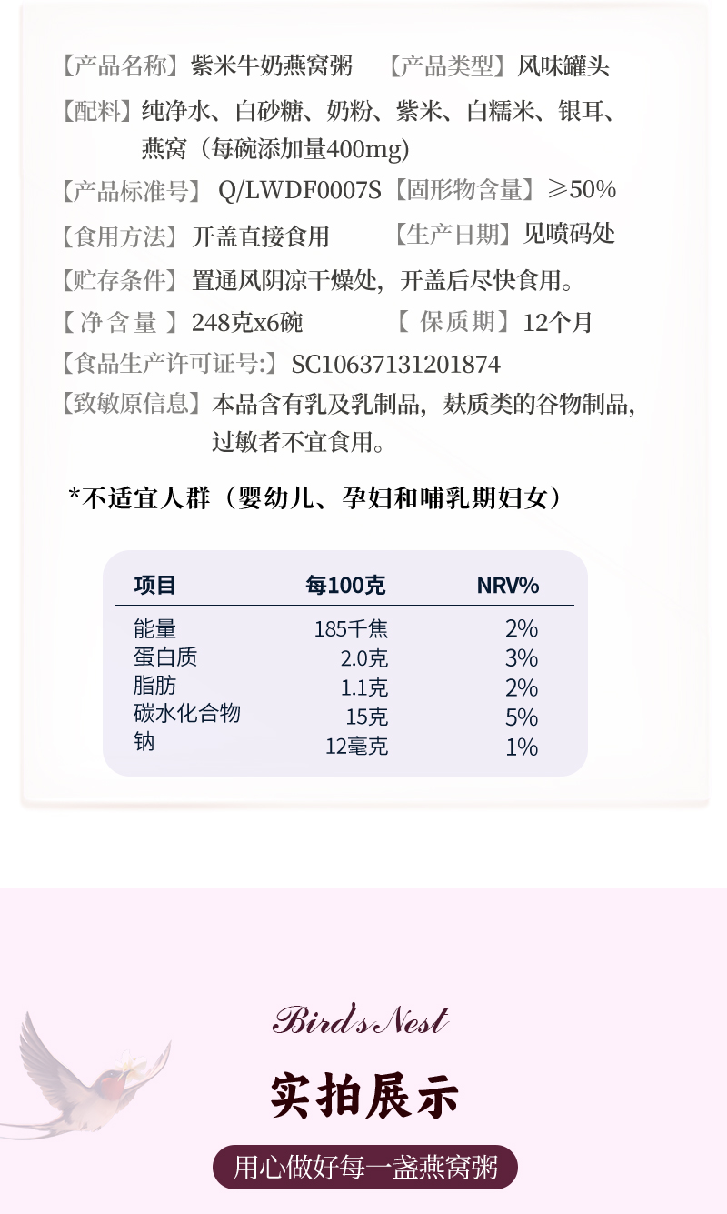 燕叨叨 紫米燕窝粥 礼盒 248g*6 粉色(单位:提)