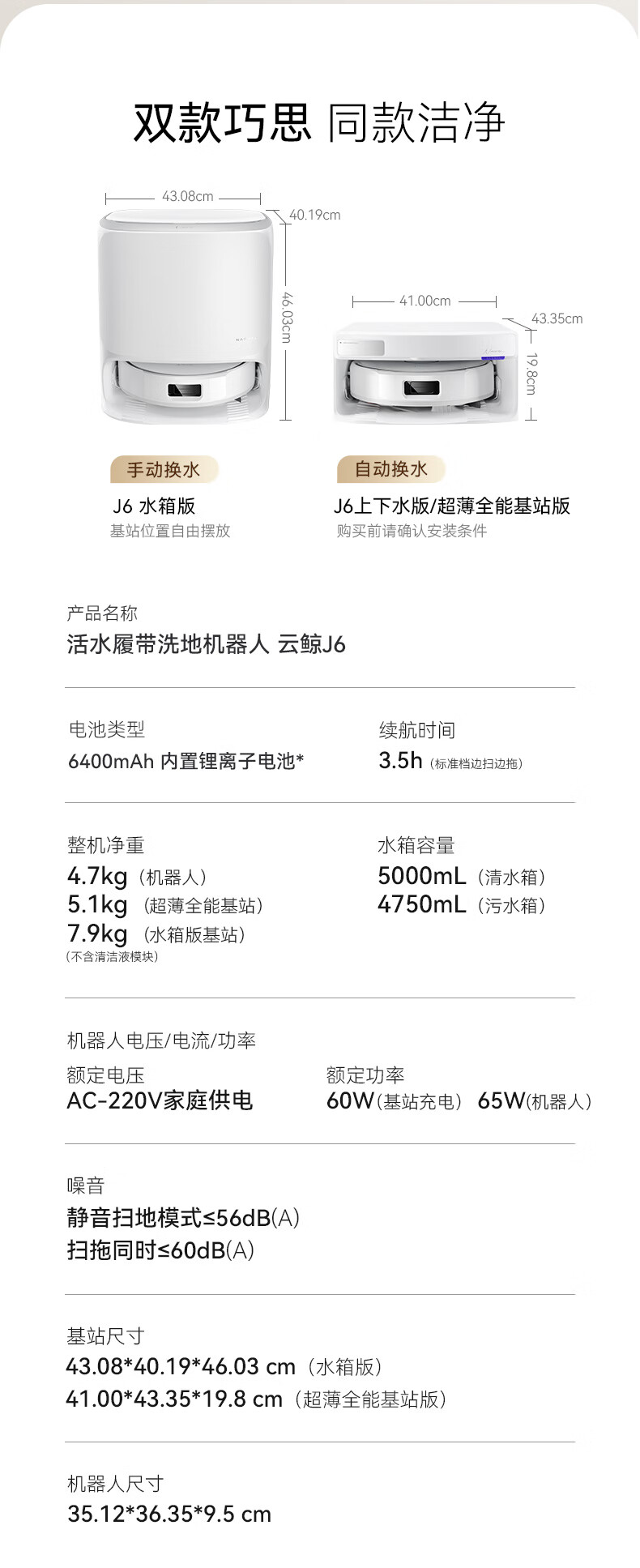 云鲸(NARWAL) 扫地机器人 J6 16.7kg 水箱版(单位:台)