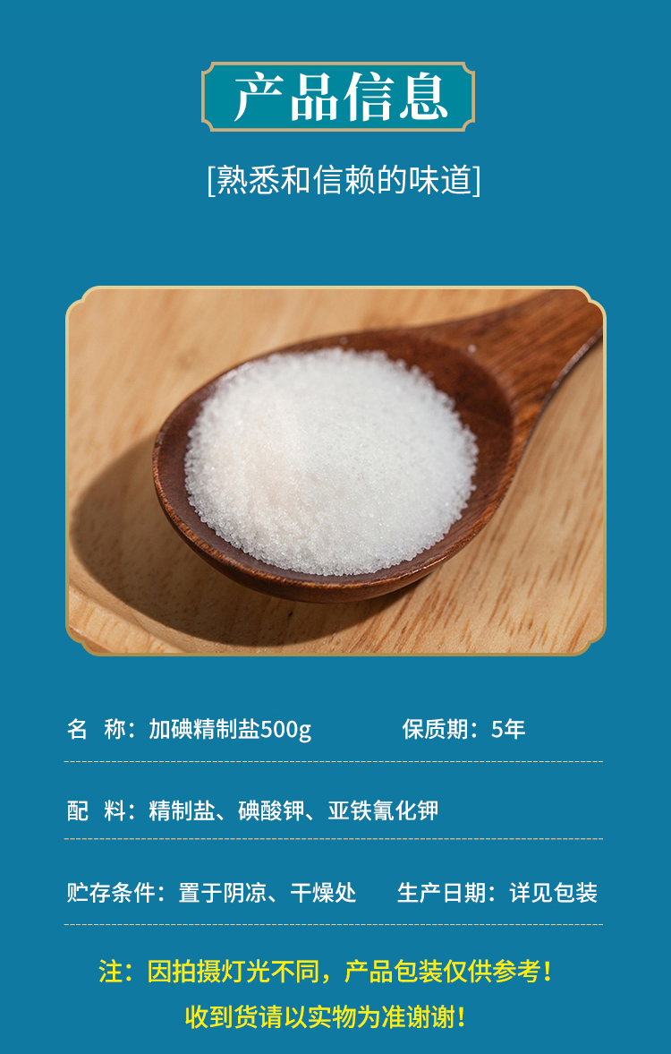 雪天 调料 加碘精制盐 500g*5 白色(单位:组)