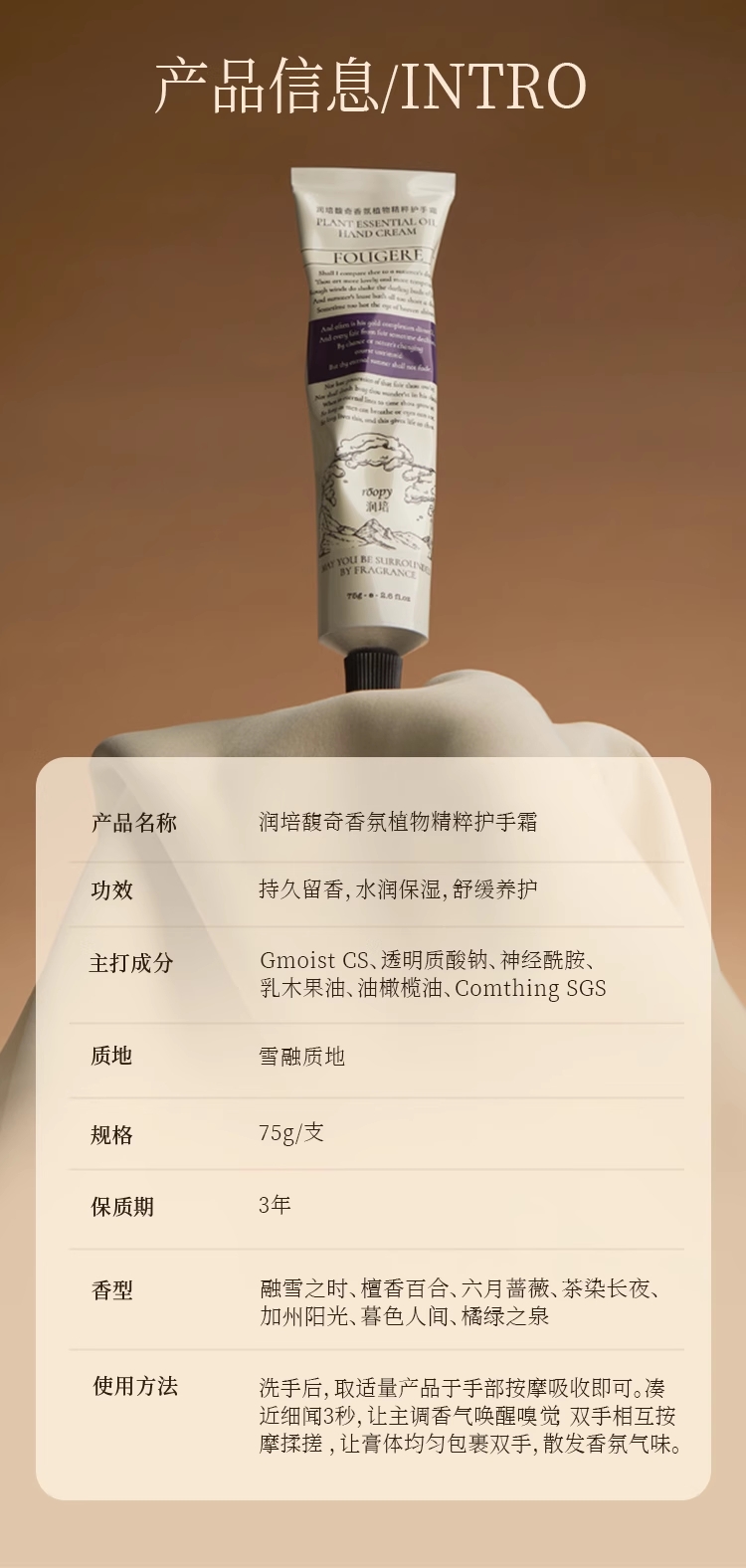ROOPY 诗境系列馥奇香氛植物精粹护手霜 檀香百合+六月蔷薇+融雪之时 75g*3 混合 混色(单位:组)