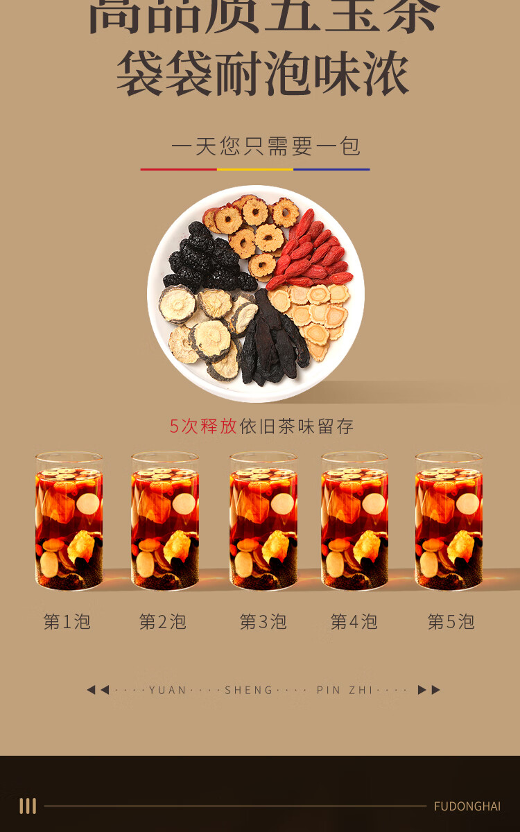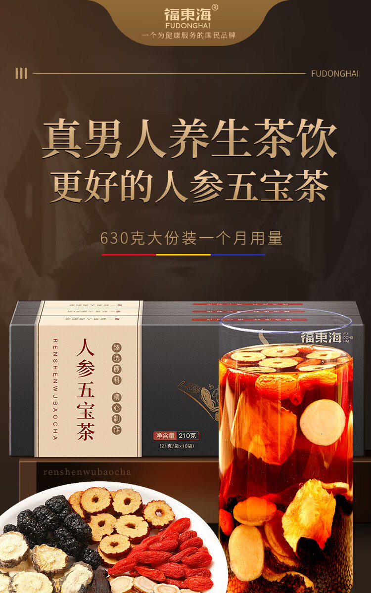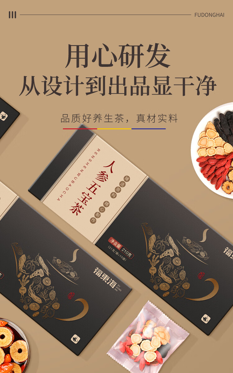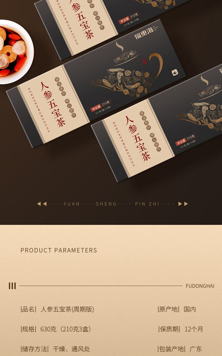 福东海(fudonghai) 人参五宝茶 FDH02010133 210克*3 深灰色(单位:盒)
