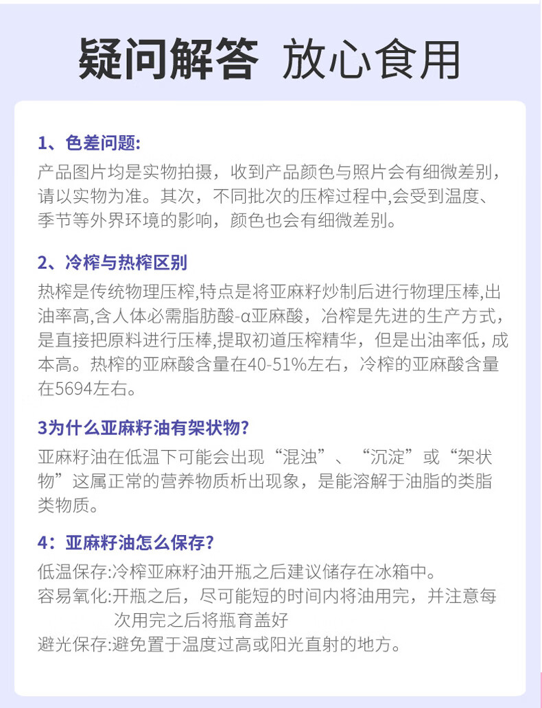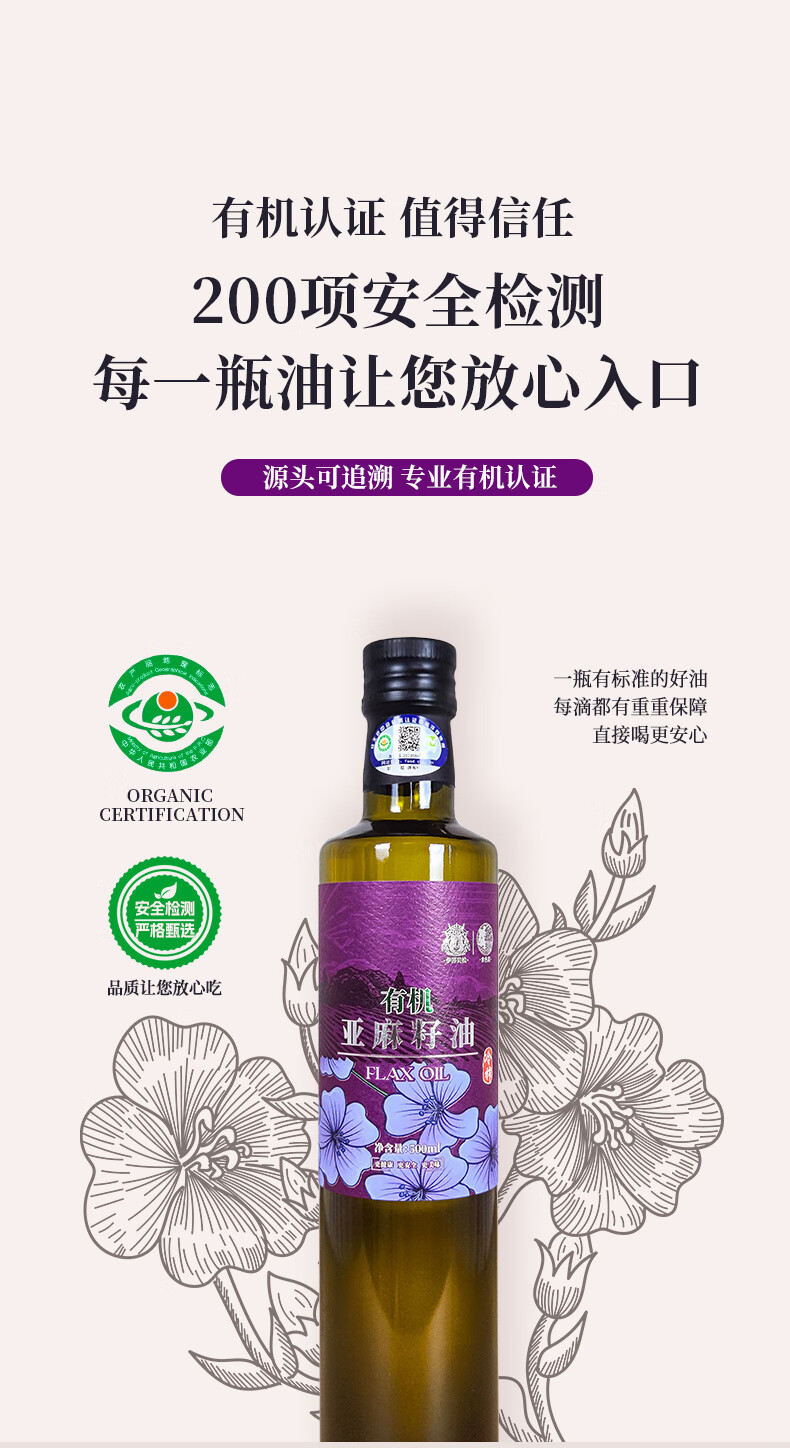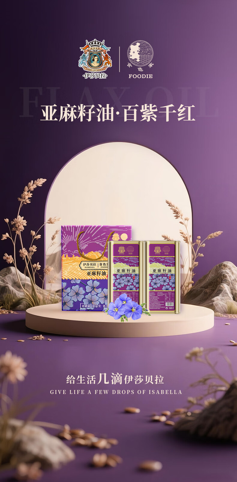 伊莎贝拉 食色家-冷榨一级亚麻籽油 百紫千红 500ml*2 紫色(单位:盒)