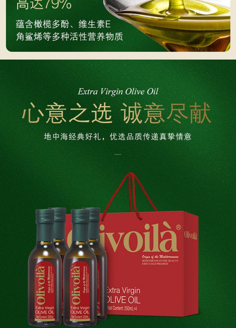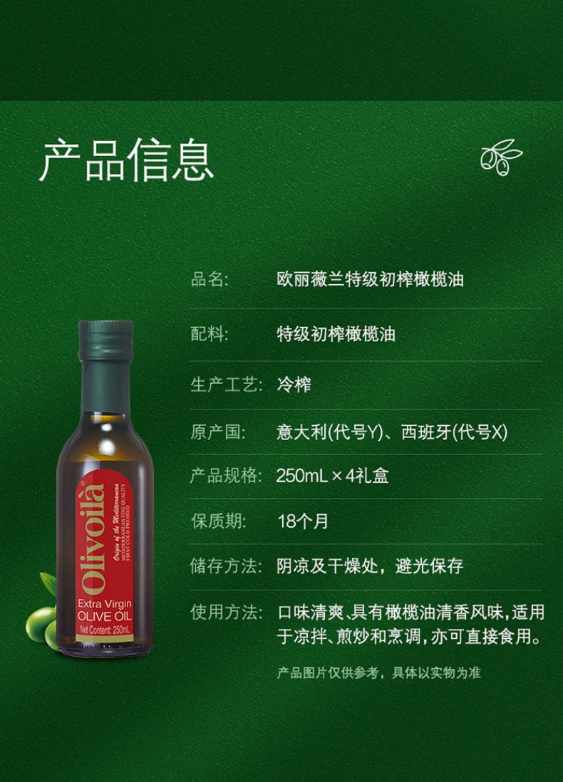 欧丽薇兰 特级初榨橄榄油 礼盒 250ml×4 红色(单位:盒)