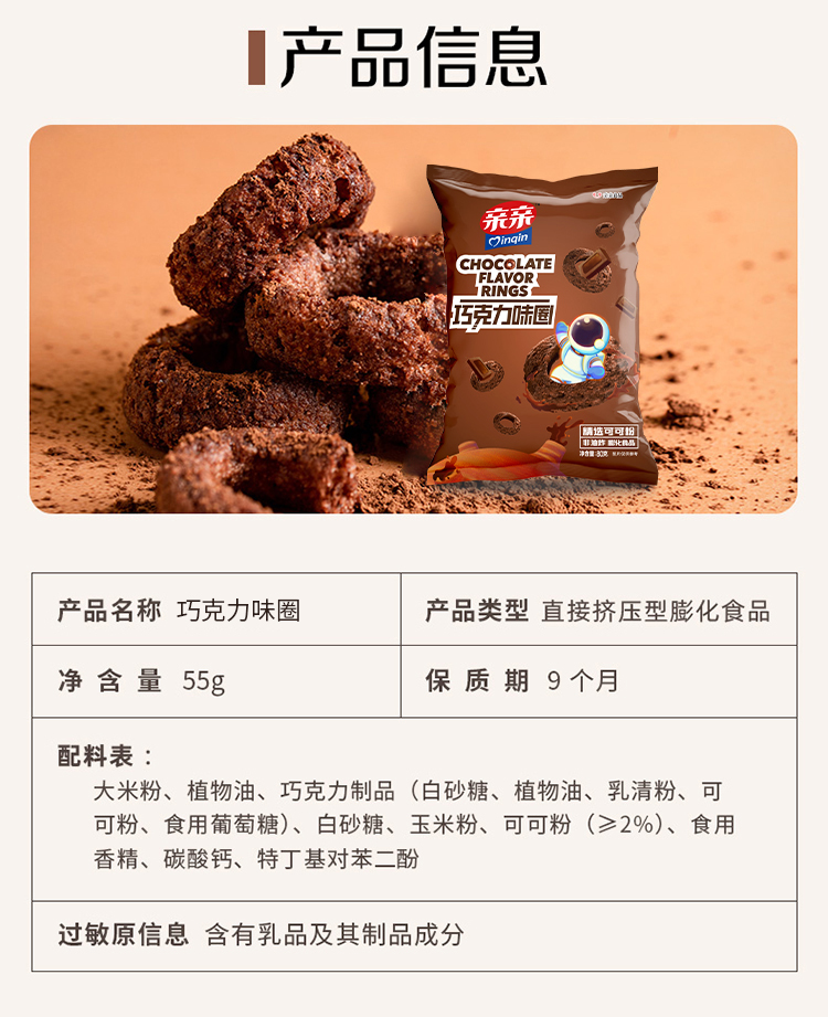亲亲(Qinqin)巧克力味圈55克*3袋(单位:袋) 咖啡色