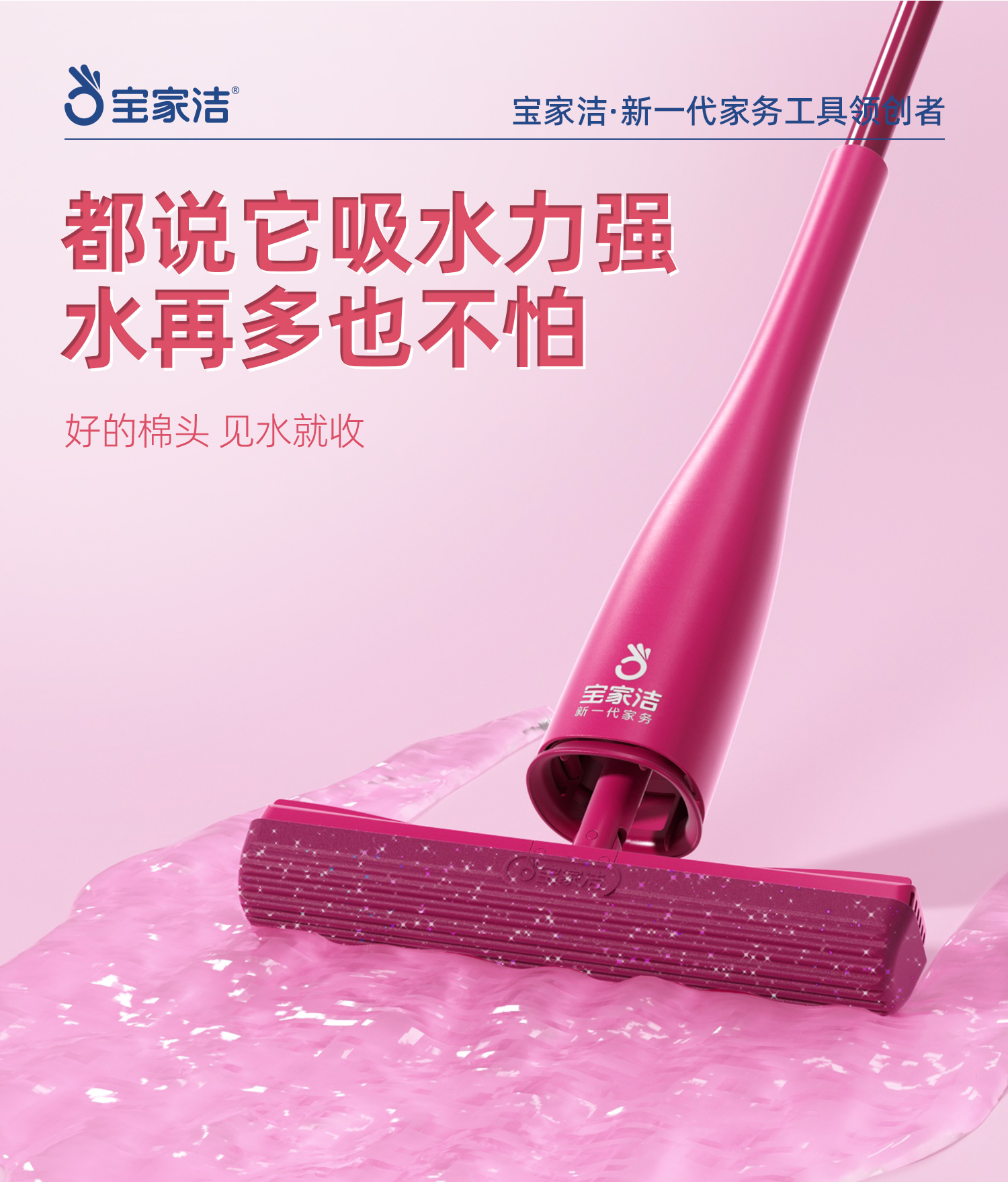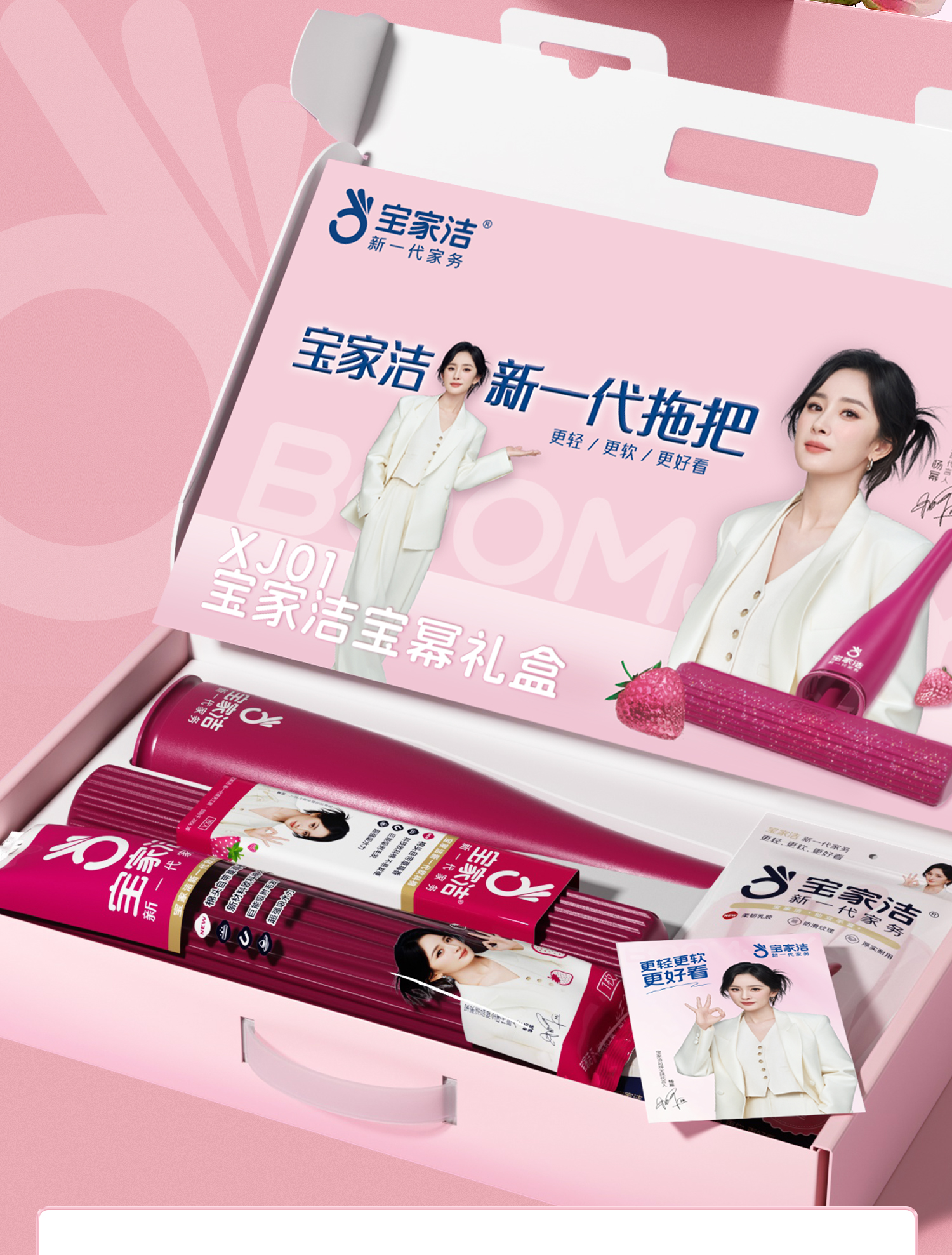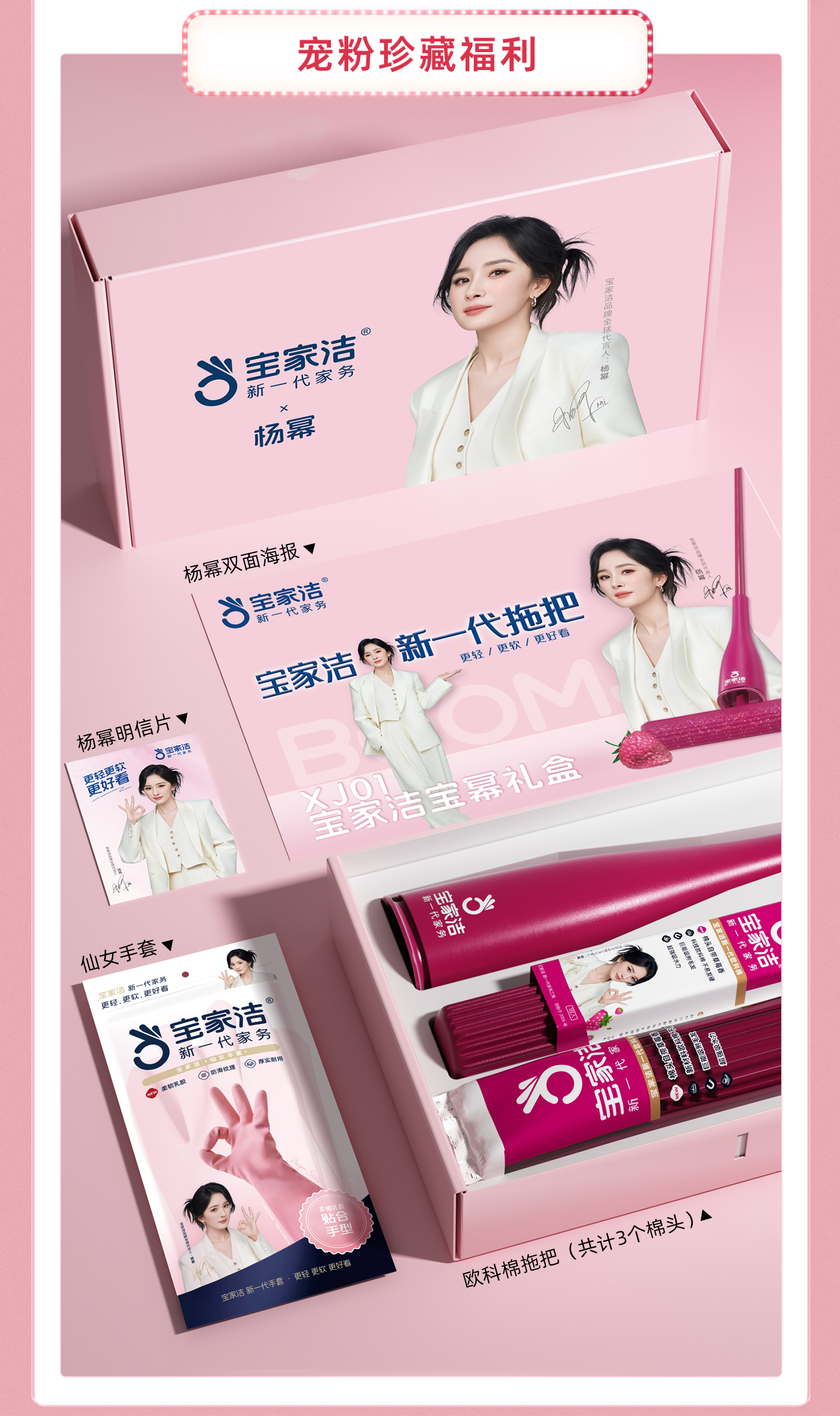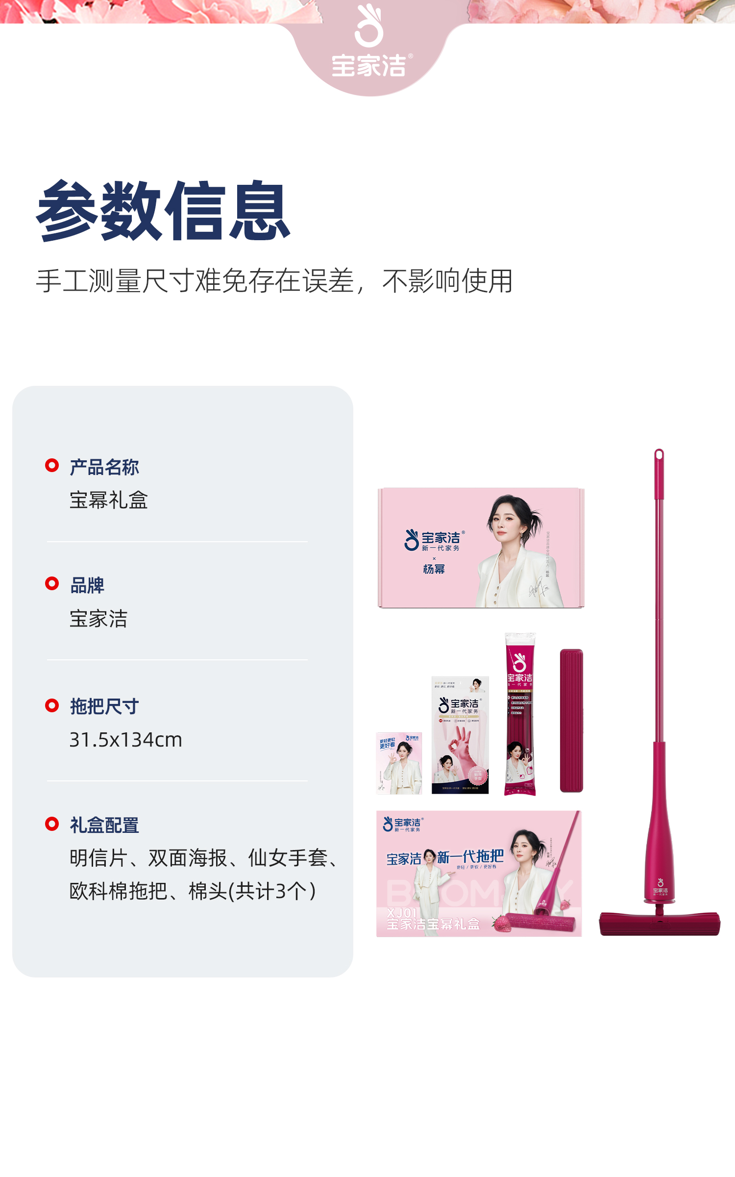 宝家洁(BAOJIAJIE) 胶棉拖把欧科棉礼盒 XJ01-U2 棉头共3个+清洁手套1包+mi宝包1包 粉红色(单位:组)