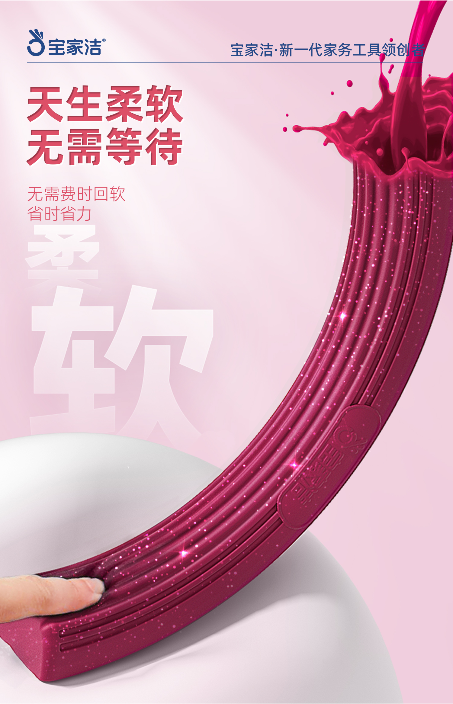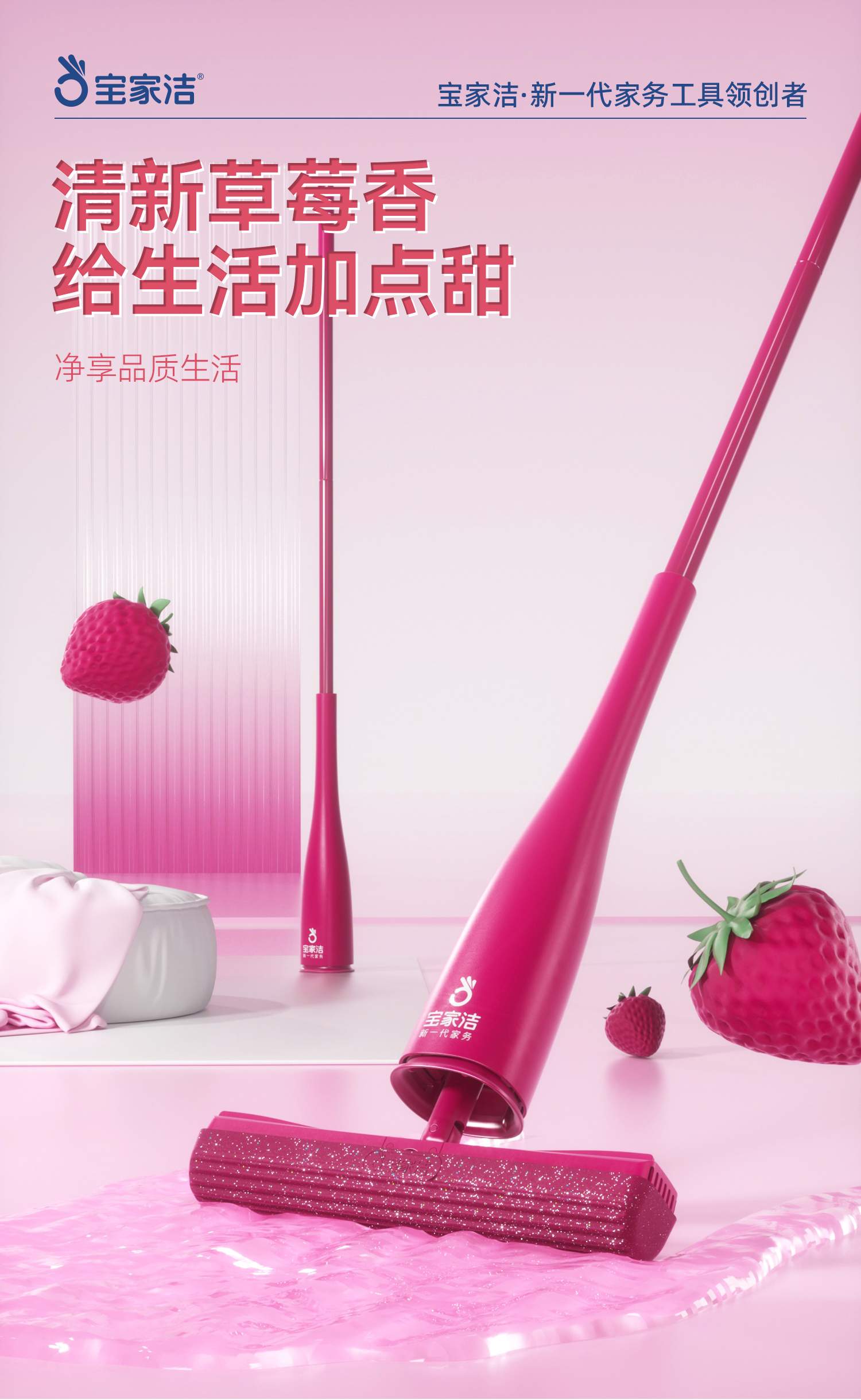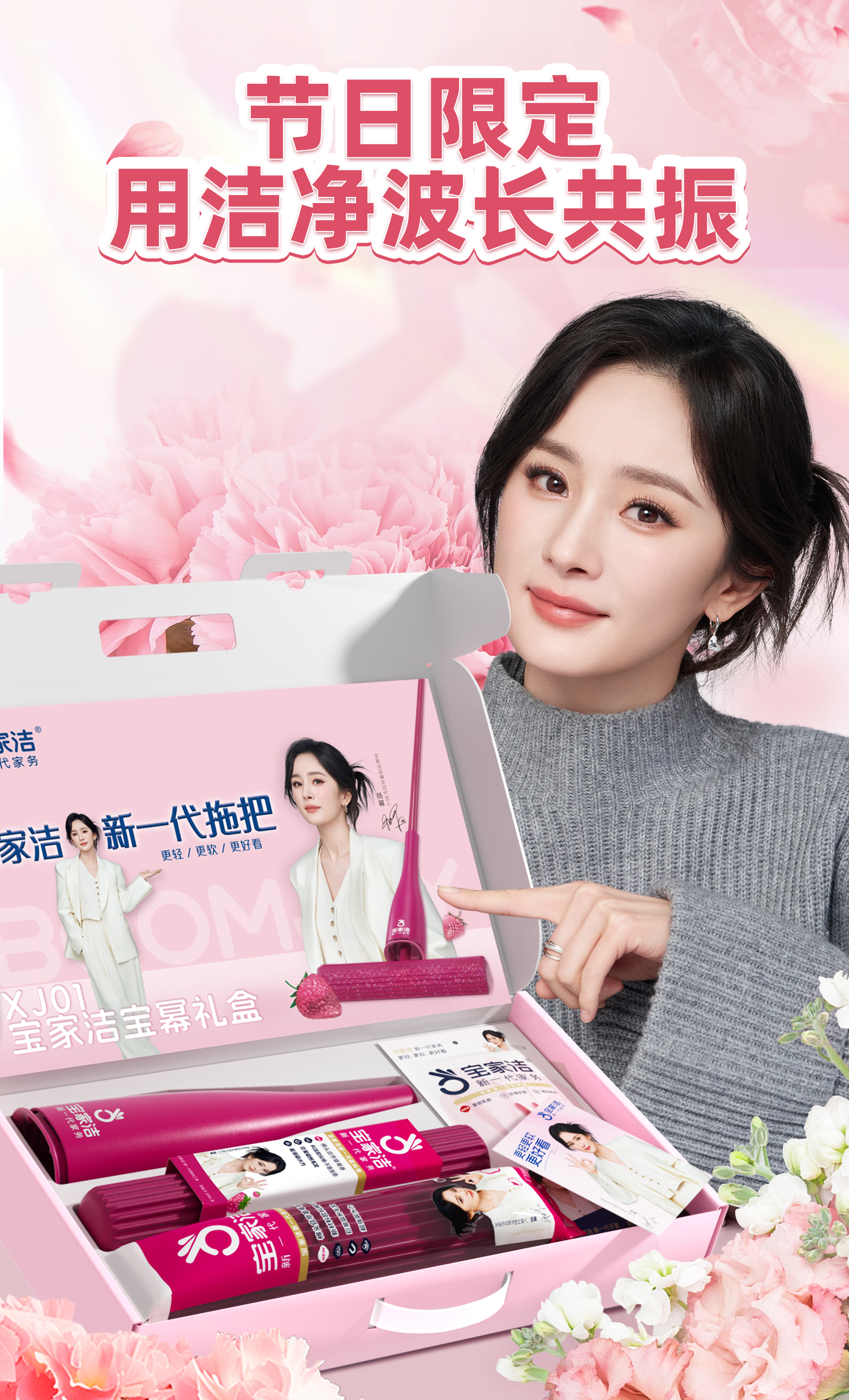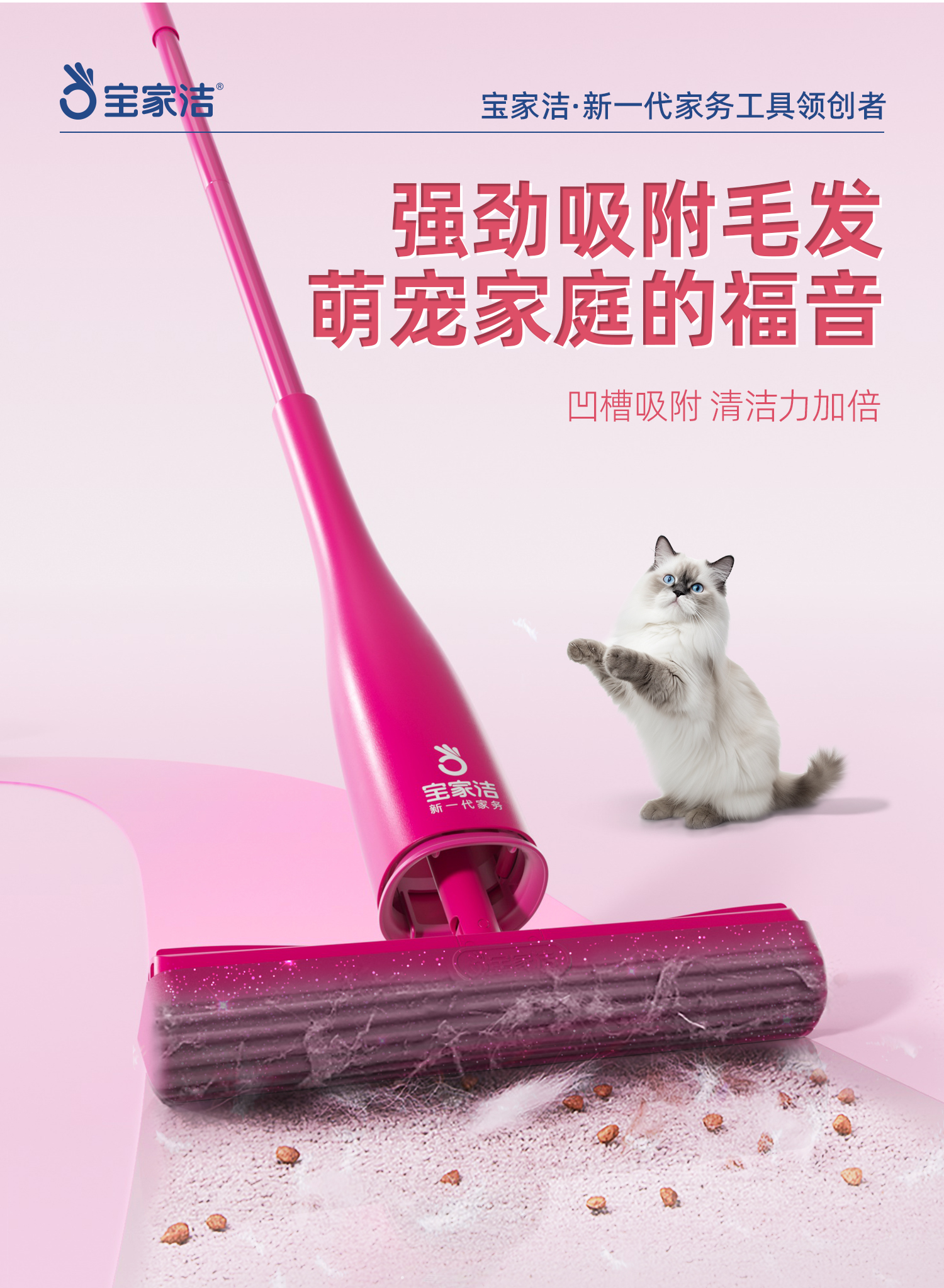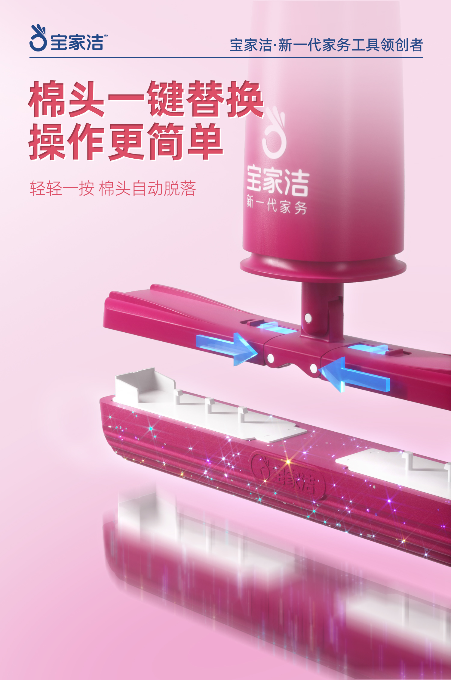 宝家洁(BAOJIAJIE) 胶棉拖把欧科棉礼盒 XJ01-U2 棉头共3个+清洁手套1包+mi宝包1包 粉红色(单位:组)