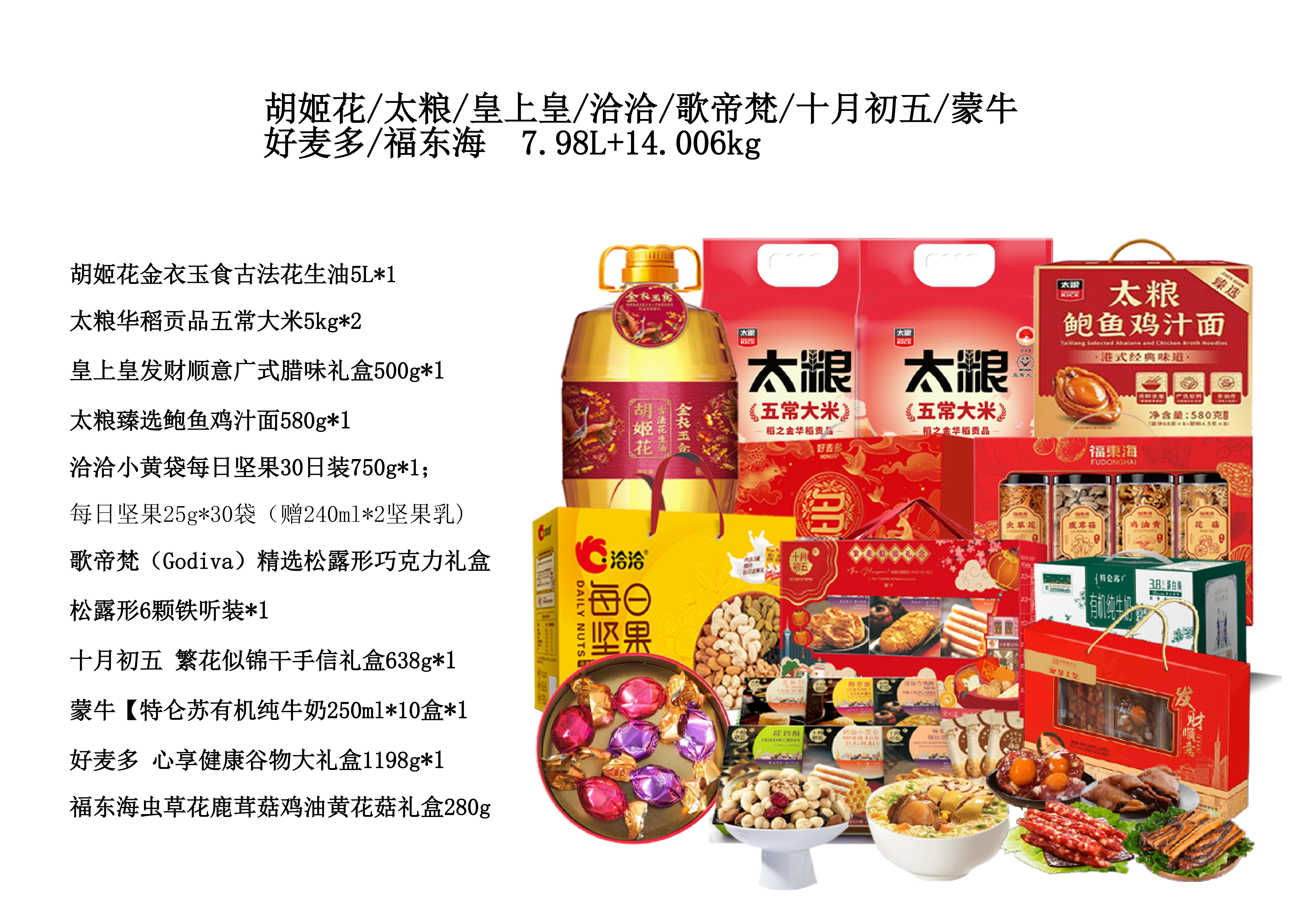 太粮 米油鸡汁面坚果巧克力牛奶谷物腊味菌菇礼盒 零食组合 7.98L+14.006kg 混色(单位:组)