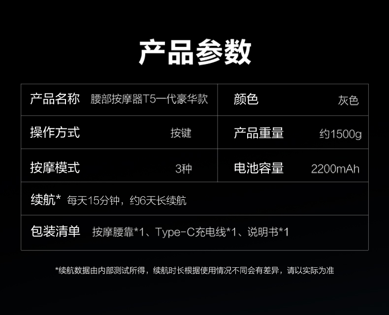 SKG T5腰部按摩仪2200mAh单位:个 灰色