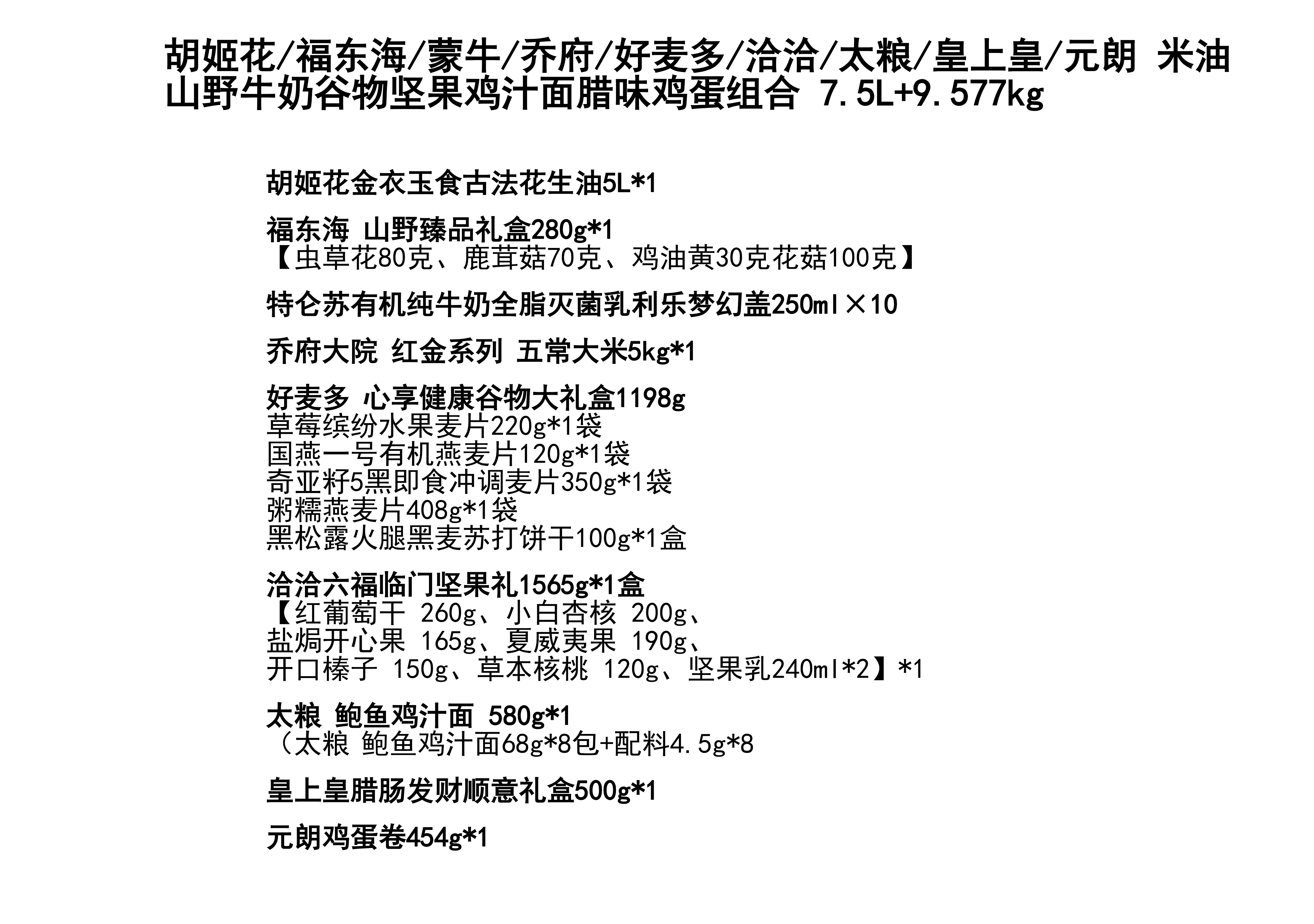 太粮 米油山野牛奶谷物坚果鸡汁面腊味鸡蛋组合 礼包组合 7.5L+9.577kg 混色(单位:组)