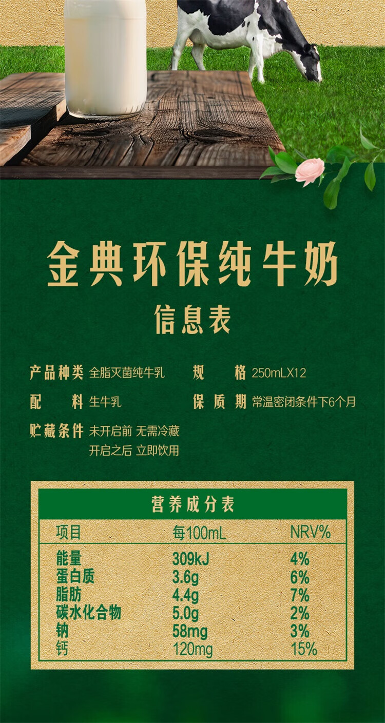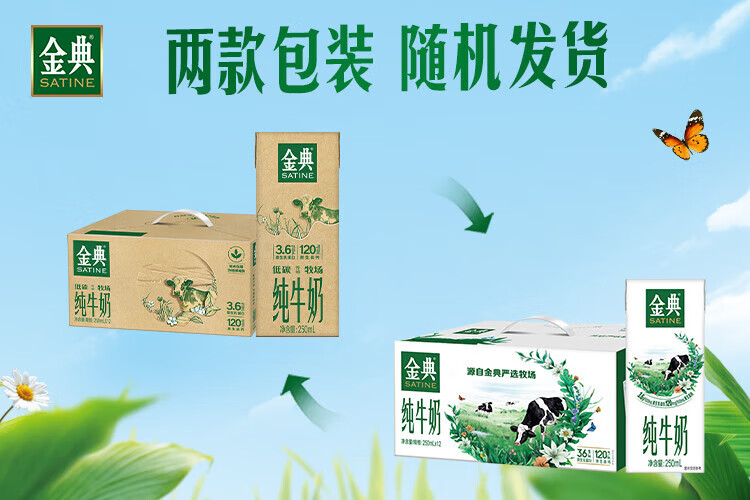 伊利 低碳环保装 金典纯牛奶 250ml*12盒*1箱 混色(单位:盒)