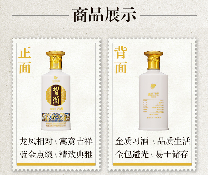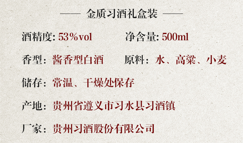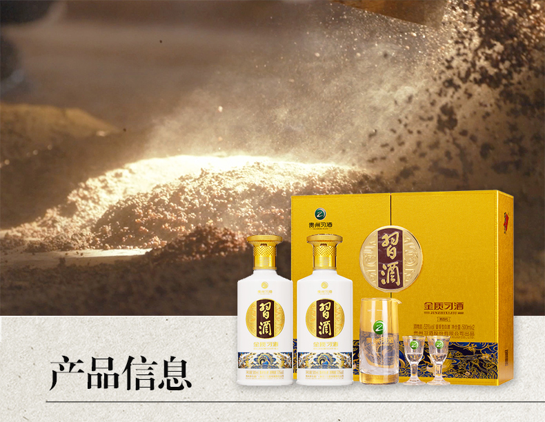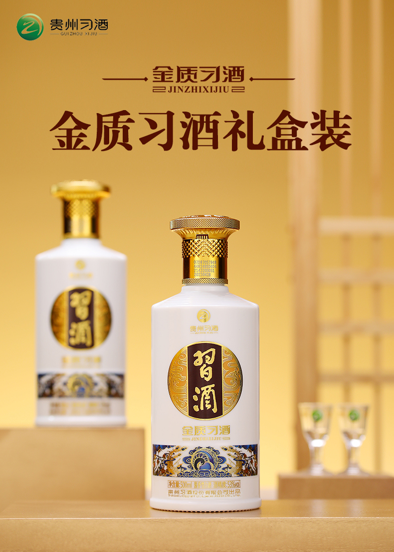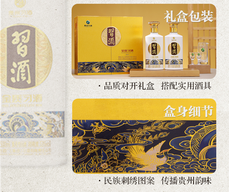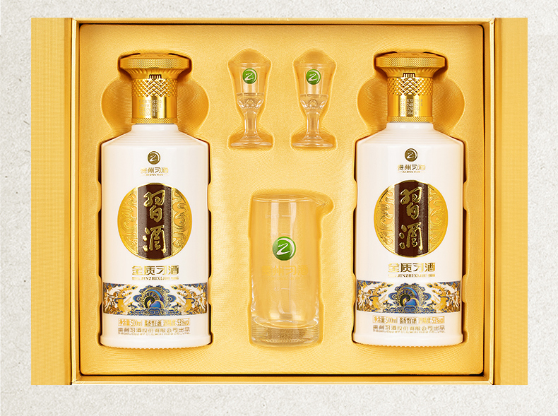 习酒第四代金质 酱香型白酒 53度500ml*2瓶 礼盒装(含酒具)中秋送礼 灰色