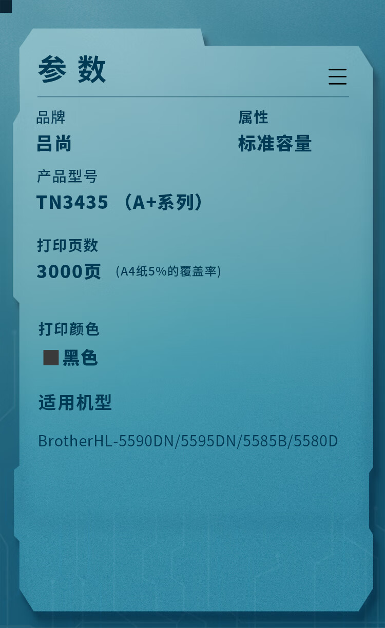 吕尚 TN3435 (A+系列) 3000页 适用BrotherHL-5590DN/5595DN/5585B/5580D 硒鼓 (计价单位:只) 黑色