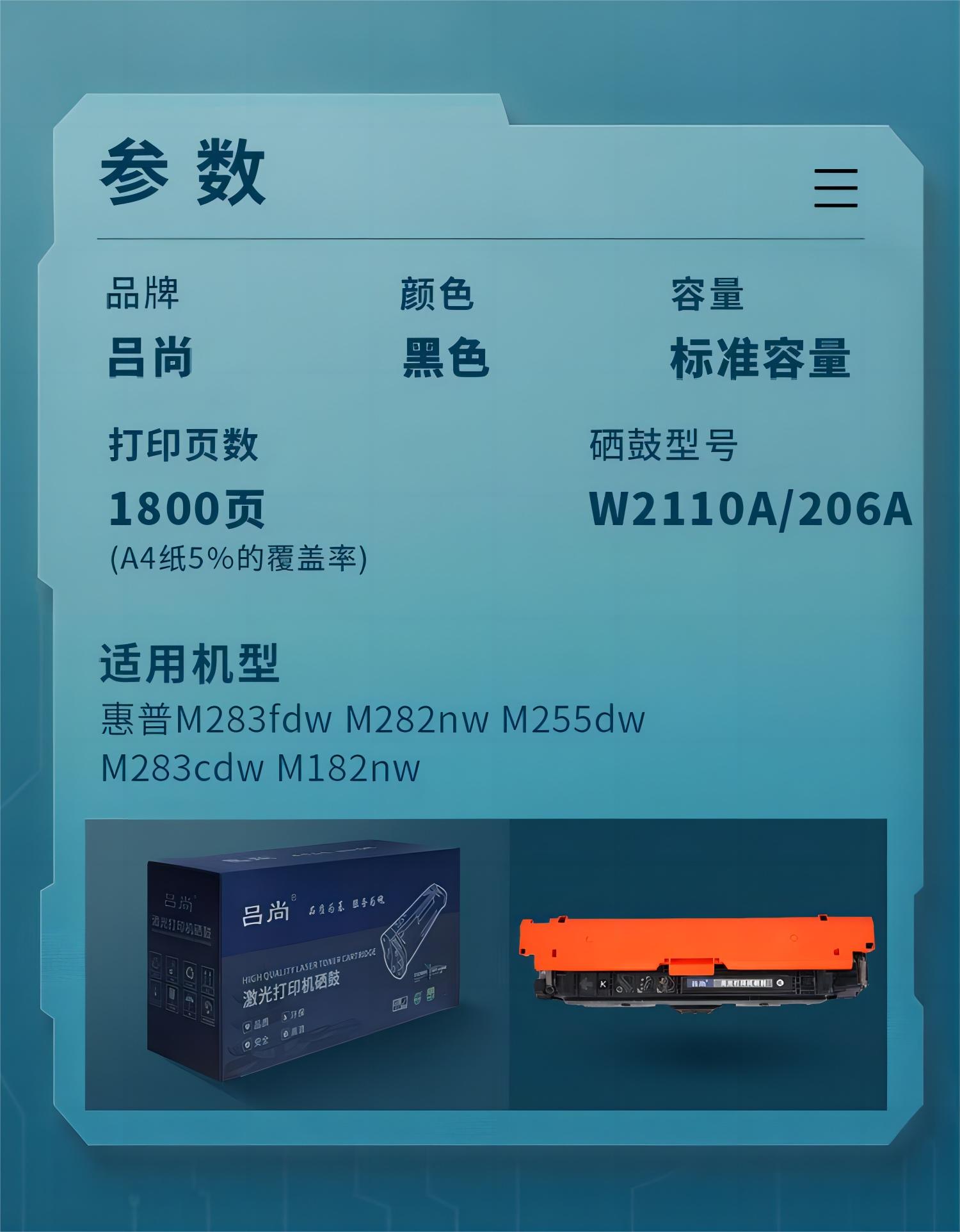 吕尚 W2110A/206A 1800页 适用惠普M283fdw M282nw M255dw M283cdw M182nw 硒鼓 (计价单位:只) 黑色