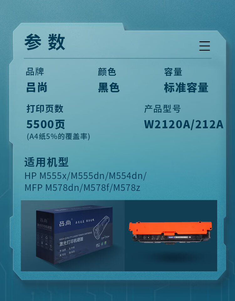 吕尚 W2120A/212A 约5500页 适用HP M555x/M555dn/M554dn/MFP M578dn/M578f/M578z 硒鼓 (计价单位:只) 黑色