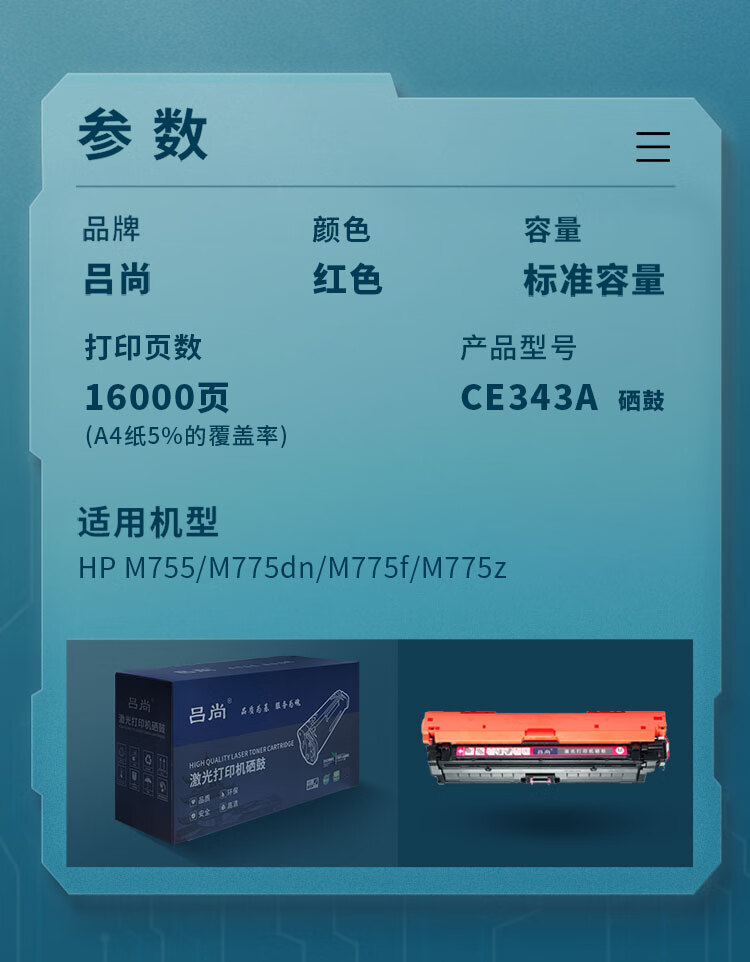 吕尚 CE343A 16000页 适用HP M755/M775dn/M775f/M775z 硒鼓 (计价单位:只) 红色