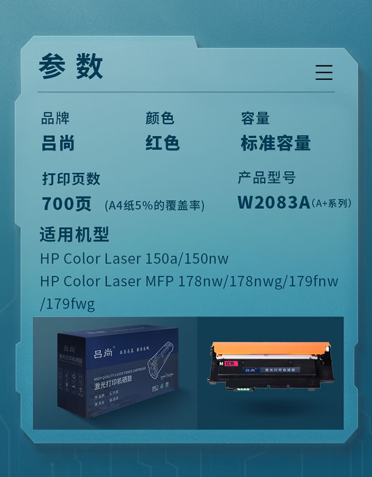 吕尚 W2083A(A+系列) 700页适用惠普hp150a 150nw 178nw 179fnw 硒鼓 (计价单位:只) 红色