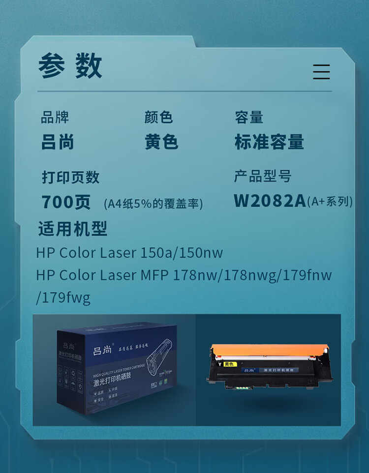 吕尚 W2082A(A+系列) 700页适用惠普hp150a 150nw 178nw 179fnw 硒鼓 (计价单位:只) 黄色