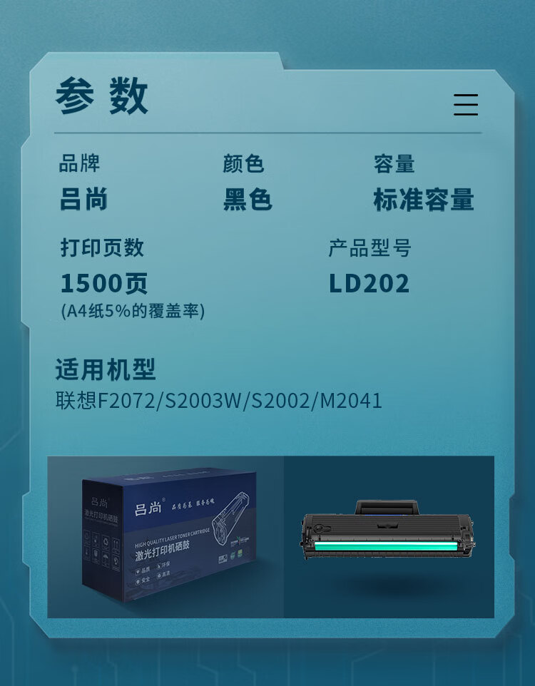 吕尚 LD202 1500页 适用联想F2072 M2041 S2003W S2002 硒鼓 (计价单位:只) 黑色